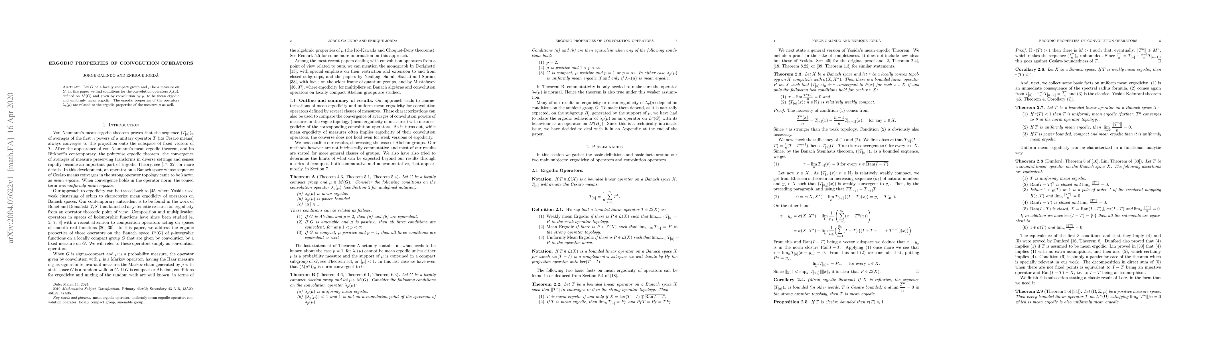 This paper explores the ergodic properties of convolution operators $\lambda_p(\mu)$ on $L^p(G)$, defined by convolution with a measure $\mu$, and establishes conditions for them to be mean ergodic and uniformly mean ergodic, linking these properties to those of the measure $\mu$.