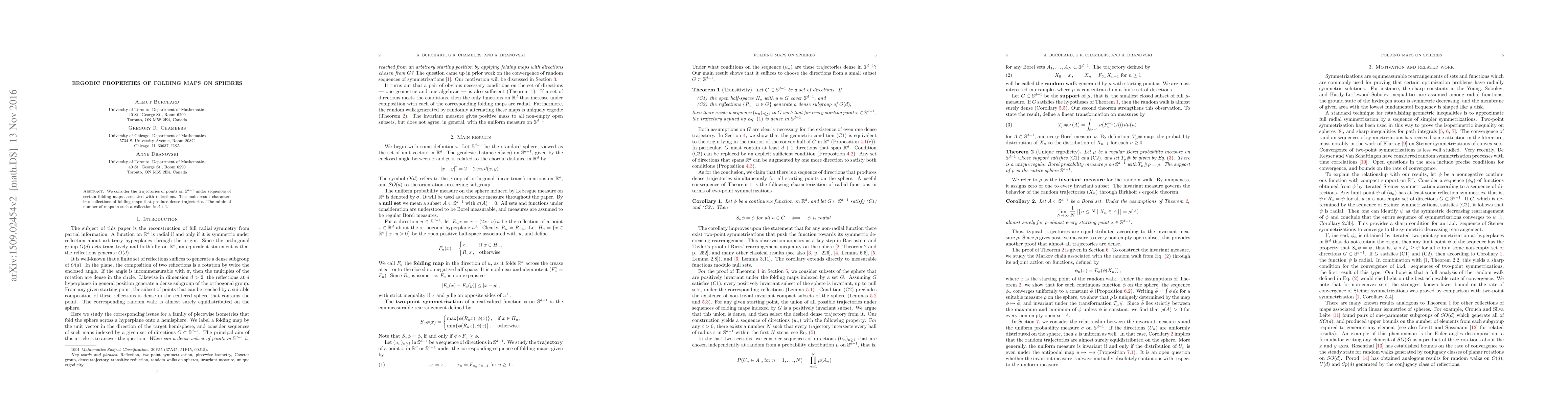 Summary: This paper investigates the ergodic properties of folding maps on spheres, demonstrating that a collection of $d+1$ folding maps can generate dense trajectories. The study characterizes the necessary folding maps for achieving this result.