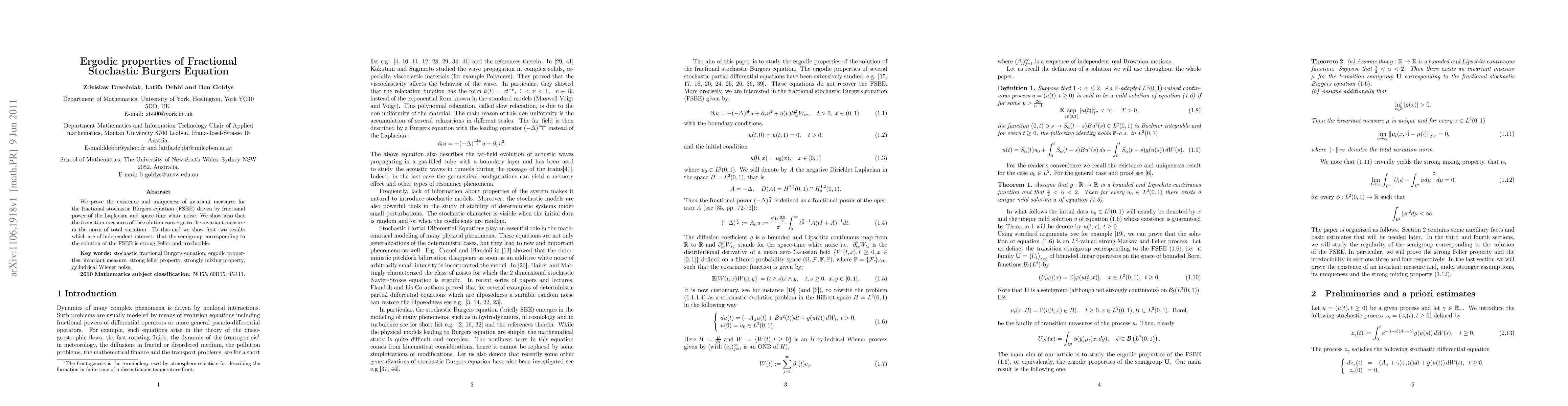 This paper proves the existence and uniqueness of invariant measures for the fractional stochastic Burgers equation, driven by fractional Laplacian and space-time white noise. It also demonstrates that the transition measures converge to the invariant measure, establishing the strong Feller and irreducibility properties of the associated semigroup.