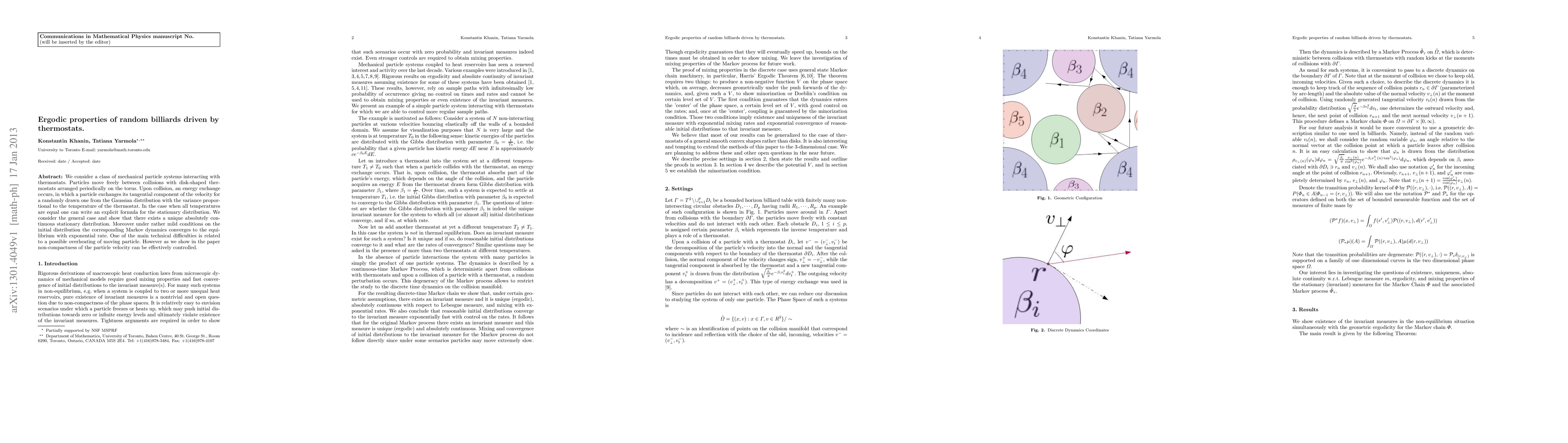 Researchers studied a mechanical particle system interacting with thermostats on a torus, finding that a unique stationary distribution exists for the Markov dynamics under mild conditions, with convergence to equilibrium occurring exponentially.