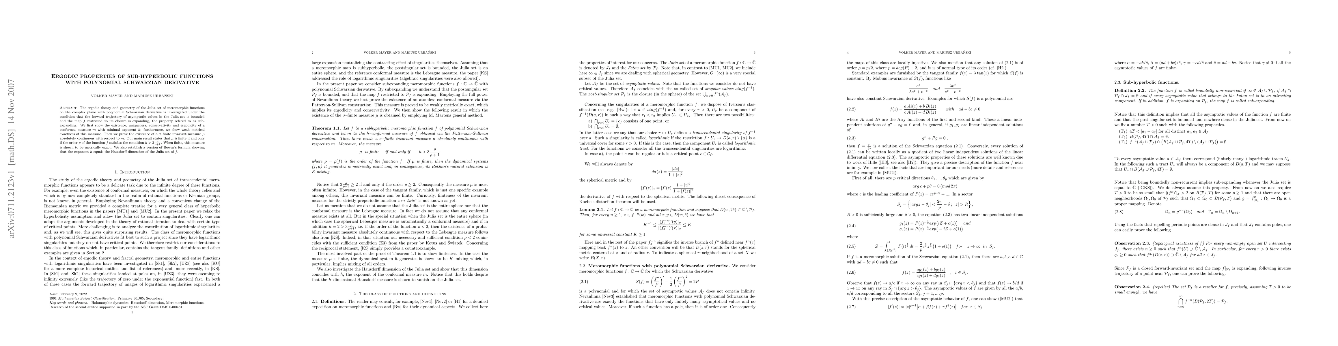 Researchers investigate ergodic properties of Julia sets for meromorphic functions with polynomial Schwarzian derivative, finding a finite invariant measure that is metrically exact under specific conditions, and establishing a relationship between the exponent and Hausdorff dimension.