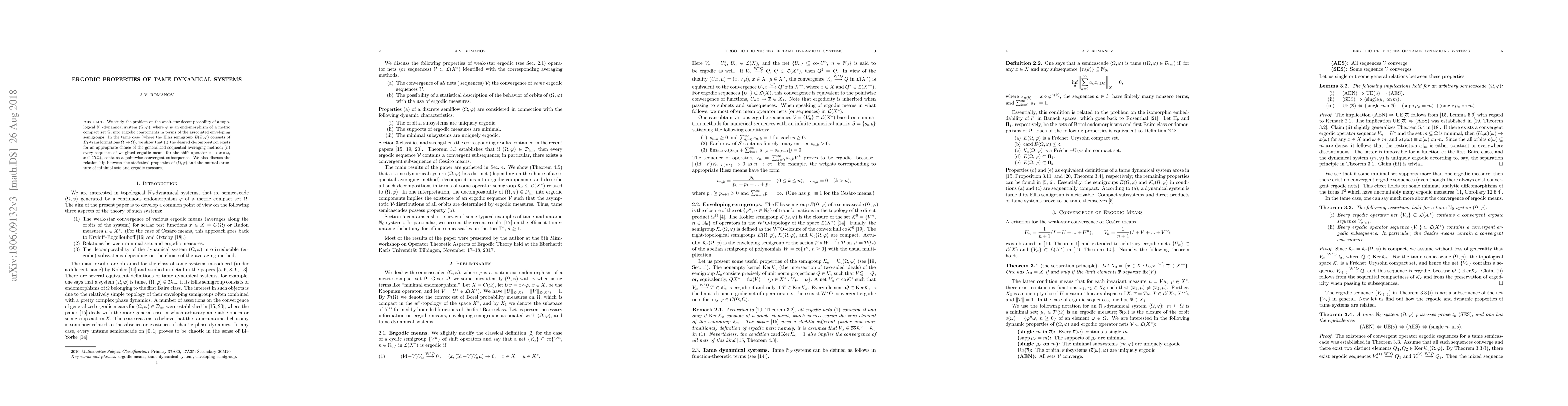 We study the problem on the weak-star decomposability of a topological $\mathbb{N}_{0}$-dynamical system $(\Omega,\varphi)$, where $\varphi$ is an endomorphism of a metric compact set $\Omega$, into ergodic components in terms of the associated enveloping semigroups. In the tame case (where the Ellis semigroup $E(\Omega,\varphi)$ consists of $B_{1}$-transformations $\Omega\rightarrow \Omega$), we show that (i) the desired decomposition exists for an appropriate choice of the generalized sequential averaging method; (ii) every sequence of weighted ergodic means for the shift operator $x\rightarrow x\circ\varphi$, $x\in C(\Omega)$, contains a pointwise convergent subsequence. We also discuss the relationship between the statistical properties of $(\Omega,\varphi)$ and the mutual structure of minimal sets and ergodic measures.