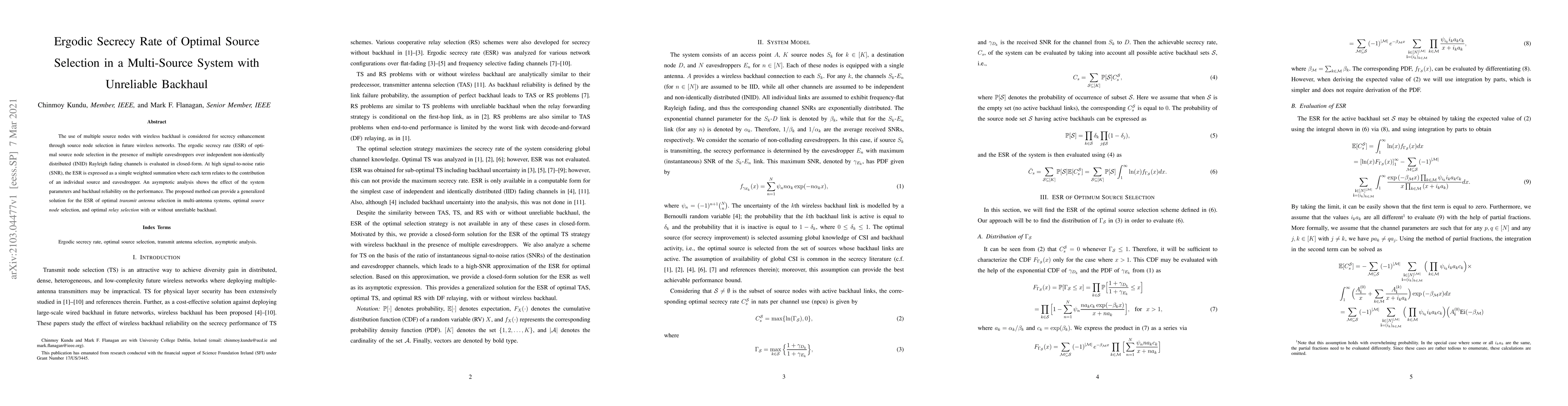 The use of multiple source nodes with wireless backhaul is considered for secrecy enhancement through source node selection in future wireless networks. The ergodic secrecy rate (ESR) of {optimal source node selection in the presence of multiple eavesdroppers} over independent non-identically distributed (INID) Rayleigh fading channels is evaluated in closed-form. At high signal-to-noise ratio (SNR), {the ESR is expressed as a simple weighted summation where each term relates to the contribution of an individual source and eavesdropper}. An asymptotic analysis shows the effect of the system parameters and backhaul reliability on the performance. {The proposed method can provide a generalized solution for the ESR of optimal \textit{transmit antenna} selection in multi-antenna systems, optimal \textit{source node} selection, and optimal \textit{relay selection} with or without unreliable backhaul.