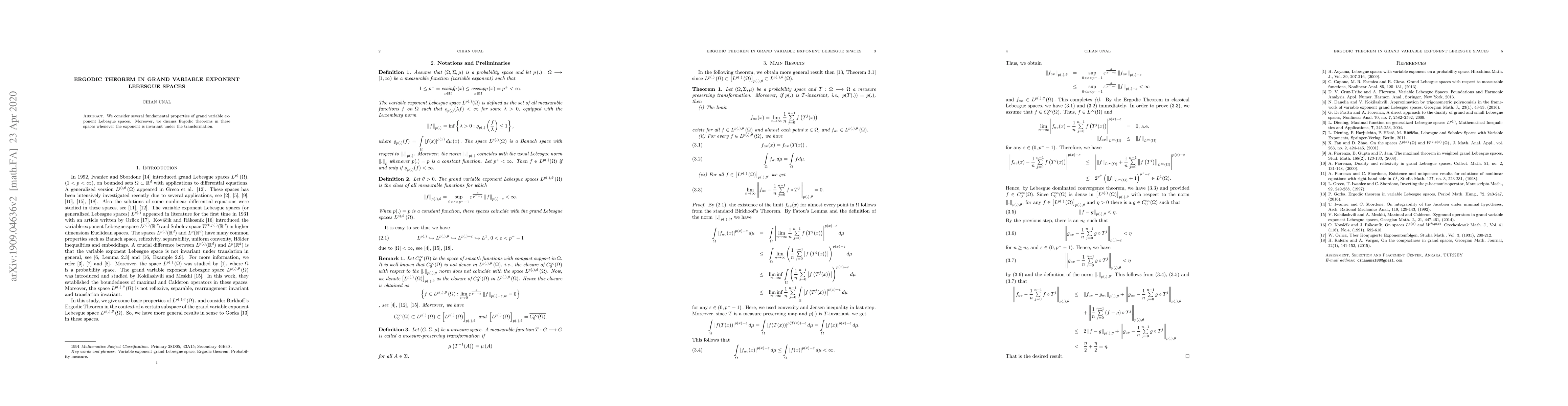This paper explores the properties of grand variable exponent Lebesgue spaces and examines Ergodic theorems within these spaces when the exponent remains invariant under the transformation.