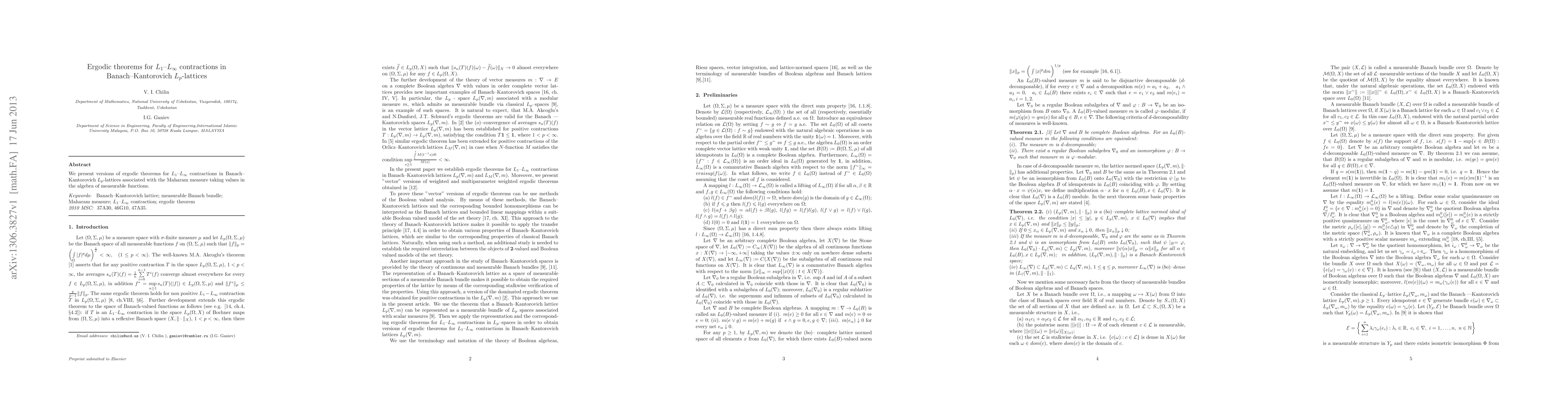 Summary: This paper develops ergodic theorems for $L_1$--$L_\infty$ contractions in Banach--Kantorovich $L_p$-lattices linked to the Maharam measure within the algebra of measurable functions. The focus is on establishing the theoretical framework for these contractions.