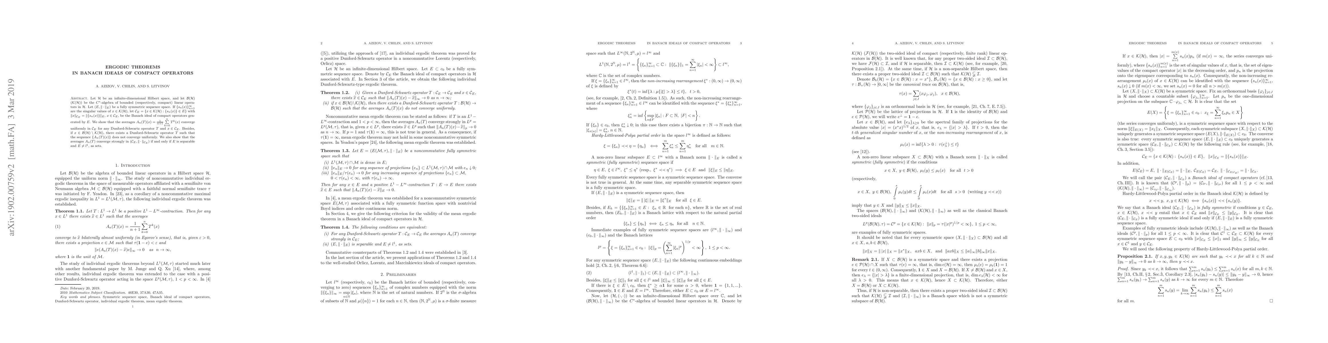 This paper establishes ergodic theorems for averages of operators within a specific Banach ideal of compact operators, $mathcal{C}_E$. It shows uniform convergence of these averages for positive Dunford-Schwartz operators and non-compact operators, under certain conditions on sequence spaces E. The study also links strong convergence of these averages to the separability and non-triviality of E.