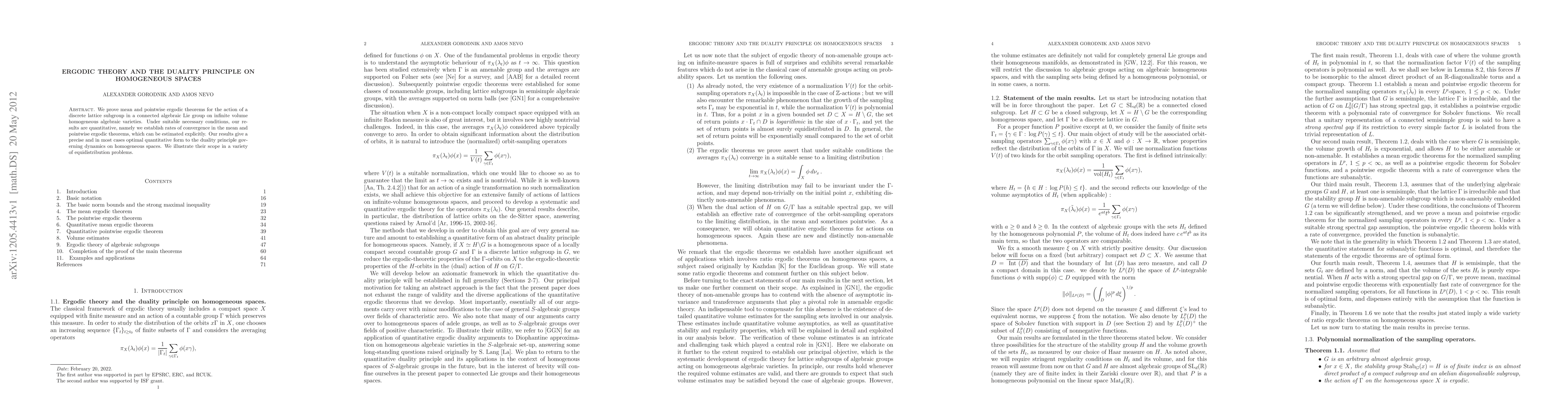 This paper proves mean and pointwise ergodic theorems for discrete lattice subgroups in connected algebraic Lie groups acting on infinite volume homogeneous varieties, establishing explicit rates of convergence. It provides a precise quantitative form of the duality principle on homogeneous spaces and demonstrates its application in various equidistribution problems.