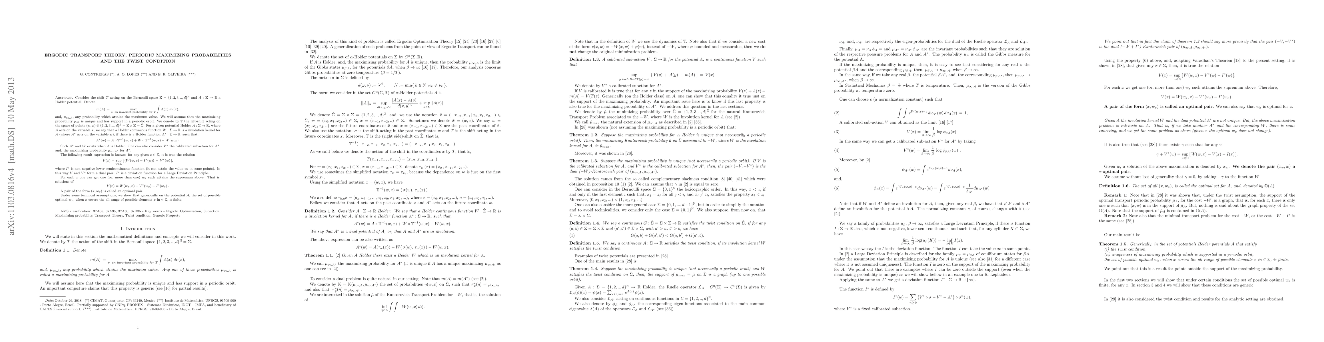 The present paper is a follow up of another one by A. O. Lopes, E. Oliveira and P. Thieullen which analyze ergodic transport problems. Our main focus will a more precise analysis of case where the maximizing probability is unique and is also a periodic orbit. Consider the shift T acting on the Bernoulli space \Sigma={1, 2, 3,.., d}^\mathbb{N} $ and $A:\Sigma \to \mathbb{R} a Holder potential. Denote m(A)=max_{\nu is an invariant probability for T} \int A(x) \; d\nu(x) and, \mu_{\infty,A}, any probability which attains the maximum value. We assume this probability is unique (a generic property). We denote \T the bilateral shift. For a given potential Holder A:\Sigma \to \mathbb{R}, we say that a Holder continuous function W: \hat{\Sigma} \to \mathbb{R} is a involution kernel for A, if there is a Holder function A^*:\Sigma \to \mathbb{R}, such that, A^*(w)= A\circ \T^{-1}(w,x)+ W \circ \T^{-1}(w,x) - W(w,x). We say that A^* is a dual potential of A. It is true that m(A)=m(A^*). We denote by V the calibrated subaction for A, and, V^* the one for A^*. We denote by I^* the deviation function for the family of Gibbs states for \beta A, when \beta \to \infty. For each x we get one (more than one) w_x such attains the supremum above. That is, solutions of V(x) = W(w_x,x) - V^* (w_x)- I^*(w_x). A pair of the form (x,w_x) is called an optimal pair. If \T is the shift acting on (x,w) \in {1, 2, 3,.., d}^\mathbb{Z}, then, the image by \T^{-1} of an optimal pair is also an optimal pair. Theorem - Generically, in the set of Holder potentials A that satisfy (i) the twist condition, (ii) uniqueness of maximizing probability which is supported in a periodic orbit, the set of possible optimal w_x, when x covers the all range of possible elements x in \in \Sigma, is finite.