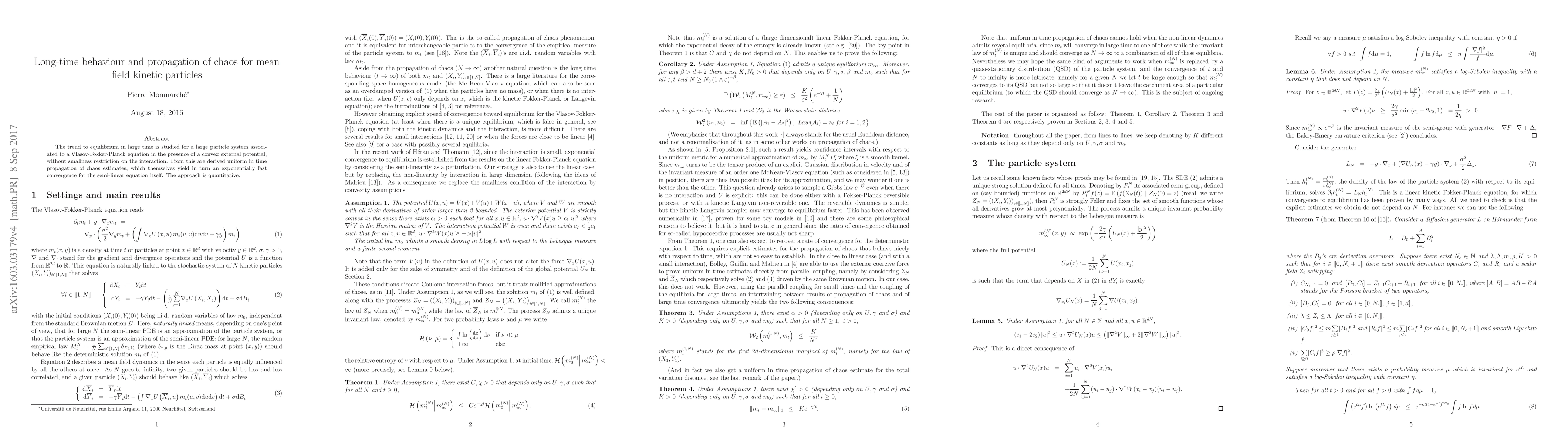 The trend to equilibrium in large time is studied for a large particle system associated to a Vlasov-Fokker-Planck equation in the presence of a convex external potential, without smallness restriction on the interaction. From this are derived uniform in time propagation of chaos estimates, which themselves yield in turn an exponentially fast convergence for the semi-linear equation itself. The approach is quantitative.