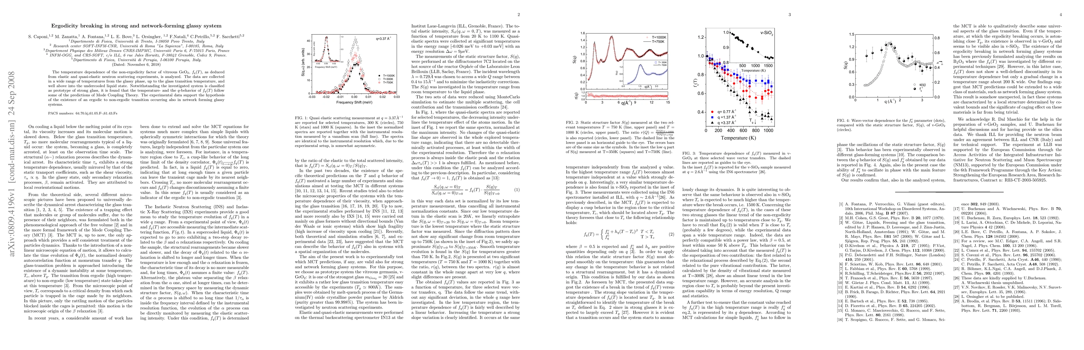 Researchers investigated the temperature dependence of non-ergodicity in glassy GeO2 using neutron scattering experiments. They found that network-forming glass systems exhibit an ergodic to non-ergodic transition, supporting a key prediction of Mode Coupling Theory.
