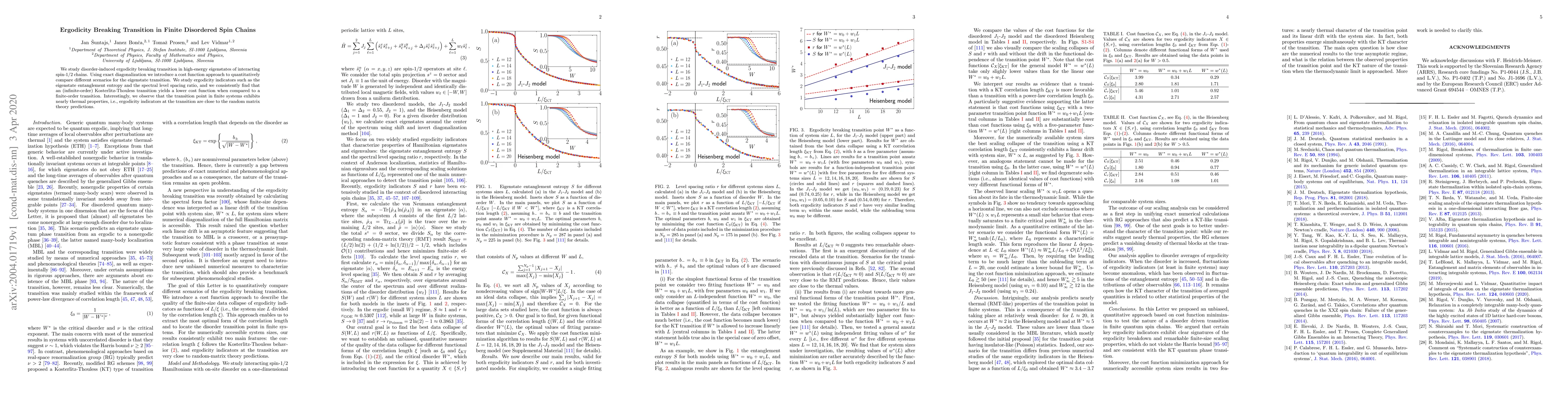 This paper investigates the ergodicity breaking transition in high-energy eigenstates of disordered spin-1/2 chains, finding that an infinite-order Kosterlitz-Thouless transition results in a lower cost function compared to finite-order transitions. The transition point in finite systems shows nearly thermal properties, aligning with random matrix theory predictions.