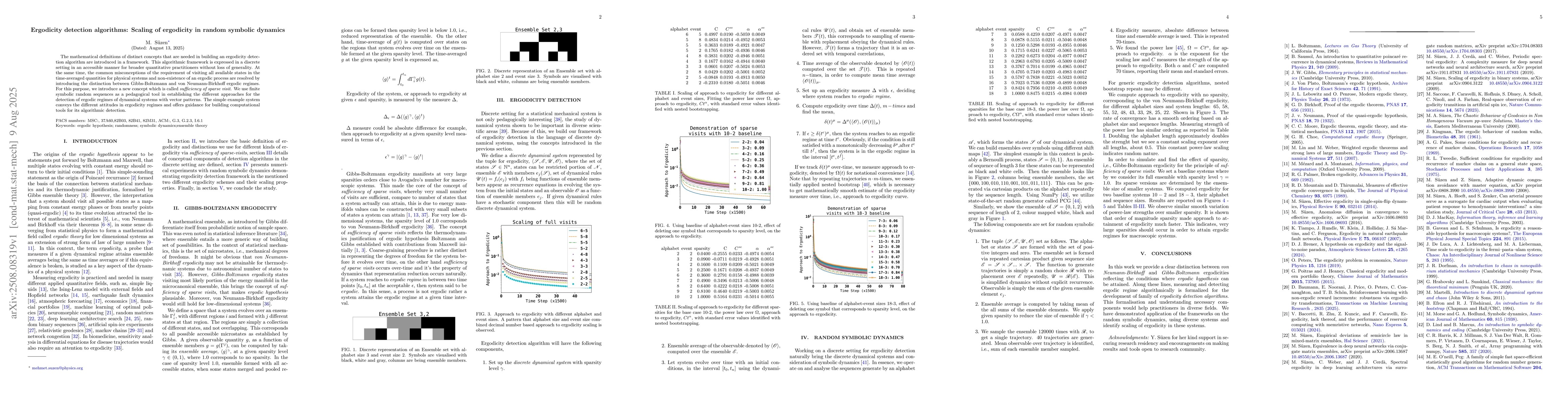 The mathematical definitions of distinct concepts that are needed in building an ergodicity detection algorithm are introduced in a framework. This algorithmic framework is expressed in a discrete setting in an accessible manner for broader quantitative practitioners without loss of generality. At the same time, the common misconceptions of the requirement of visiting all available states in the time-averaged quantities for physical systems and non-existence of an ergodic process are resolved by introducing the distinction between Gibbs-Boltzmann and von Neumann-Birkhoff ergodic regimes. For this purpose, we introduce a new concept which is called sufficiency of sparse visit. We use finite symbolic random sequences as a pedagogical tool in establishing the different approaches for the detection of ergodic regimes of dynamical systems with vector patterns. The simple example system conveys the different attitudes in ergodicity regimes and offers guidance for building computational tools for its algorithmic detection.