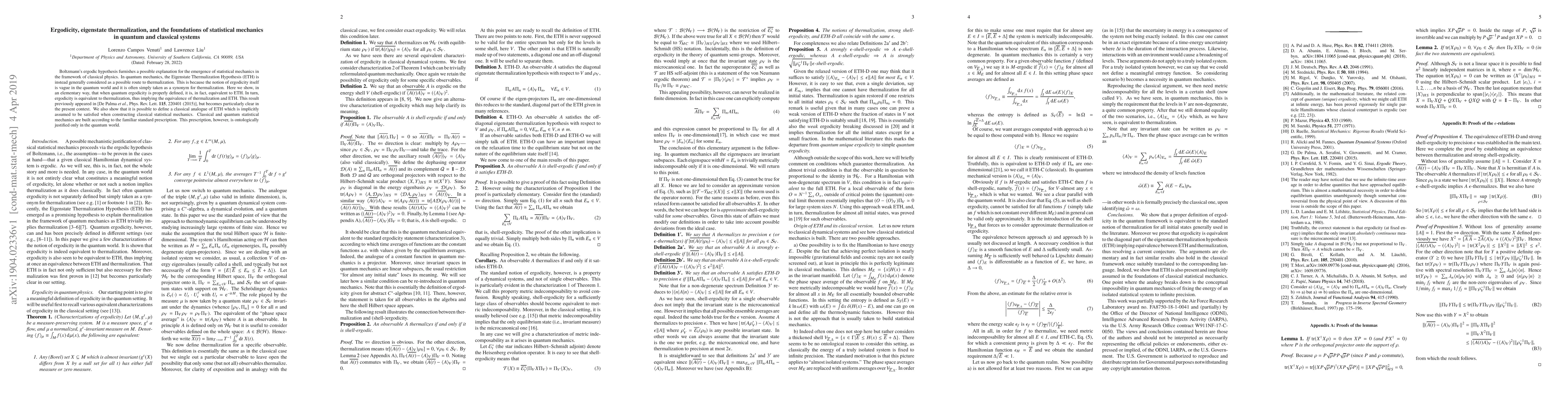 Boltzmann's ergodic hypothesis furnishes a possible explanation for the emergence of statistical mechanics in the framework of classical physics. In quantum mechanics, the Eigenstate Thermalization Hypothesis (ETH) is instead generally considered as a possible route to thermalization. This is because the notion of ergodicity itself is vague in the quantum world and it is often simply taken as a synonym for thermalization. Here we show, in an elementary way, that when quantum ergodicity is properly defined, it is, in fact, equivalent to ETH. In turn, ergodicity is equivalent to thermalization, thus implying the equivalence of thermalization and ETH. This result previously appeared in [De Palma et al., Phys. Rev. Lett. 115, 220401 (2015)], but becomes particularly clear in the present context. We also show that it is possible to define a classical analogue of ETH which is implicitly assumed to be satisfied when constructing classical statistical mechanics. Classical and quantum statistical mechanics are built according to the familiar standard prescription. This prescription, however, is ontologically justified only in the quantum world.