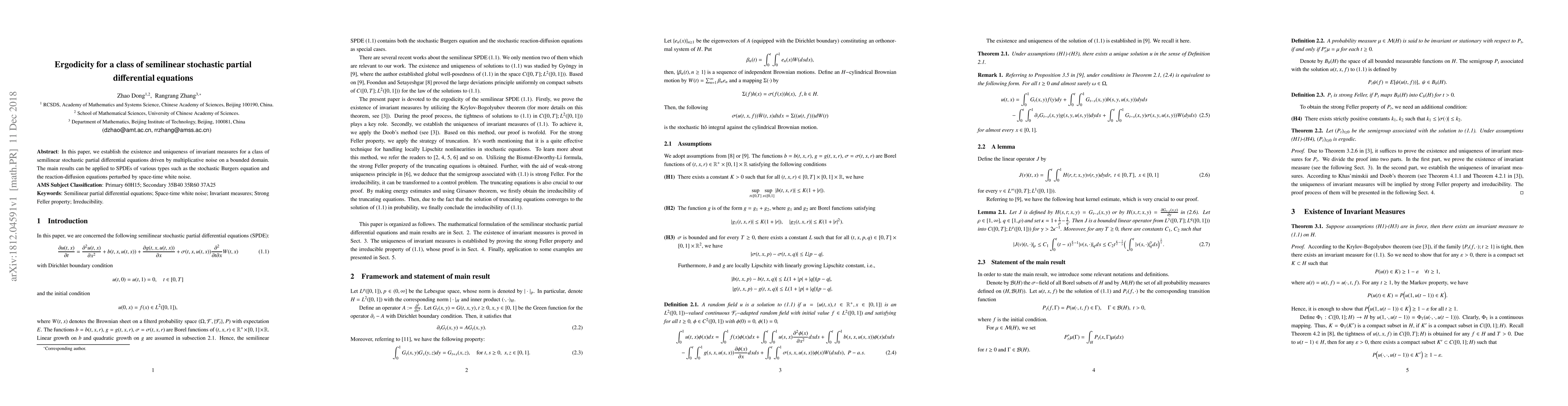 Summary: This paper proves the existence and uniqueness of invariant measures for semilinear stochastic partial differential equations driven by multiplicative noise. The findings apply to various SPDEs, including stochastic Burgers and reaction-diffusion equations perturbed by space-time white noise.
