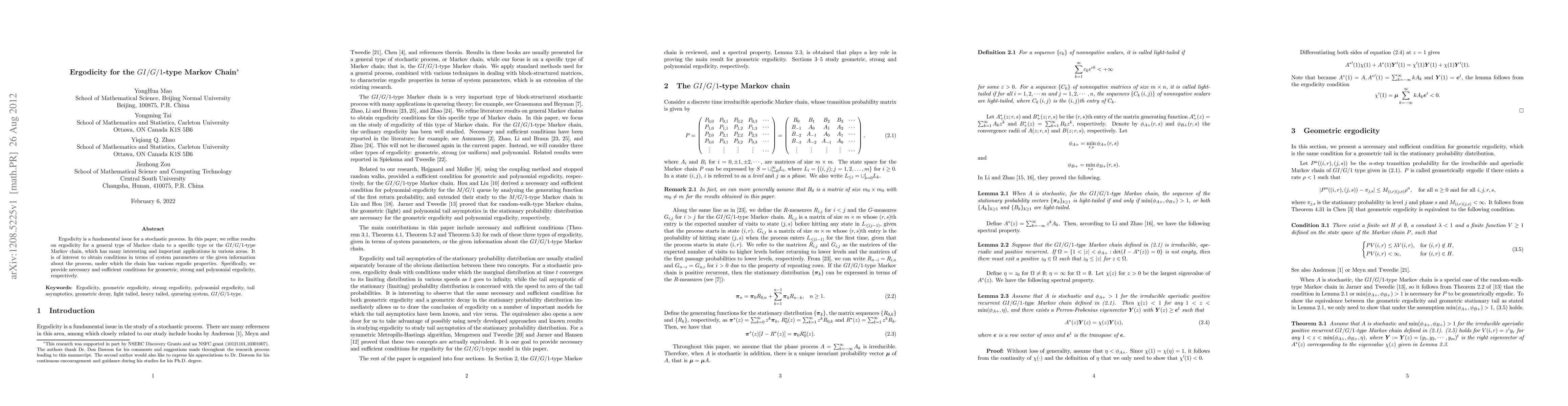 This paper refines ergodicity results for the $GI/G/1$-type Markov chain, providing necessary and sufficient conditions for geometric, strong, and polynomial ergodicity based on system parameters and process information. These findings are crucial for various applications across different fields.