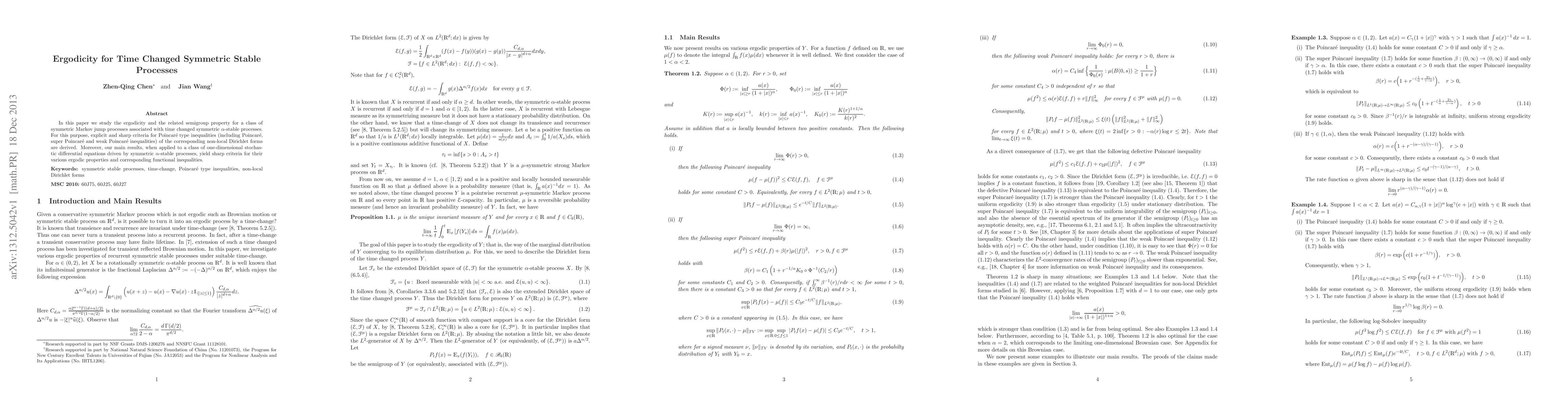 This paper investigates ergodicity and semigroup properties for time-changed symmetric stable processes, deriving explicit criteria for Poincaré type inequalities of associated non-local Dirichlet forms. The results provide sharp criteria for ergodic properties and functional inequalities for one-dimensional stochastic differential equations driven by symmetric stable processes.