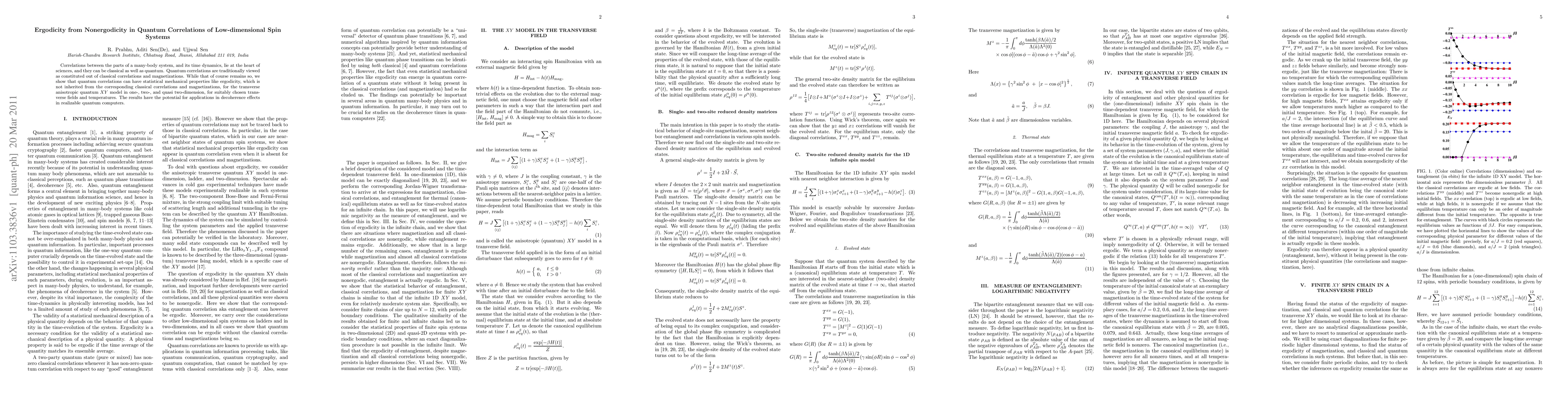 Correlations between the parts of a many-body system, and its time dynamics, lie at the heart of sciences, and they can be classical as well as quantum. Quantum correlations are traditionally viewed as constituted out of classical correlations and magnetizations. While that of course remains so, we show that quantum correlations can have statistical mechanical properties like ergodicity, which is not inherited from the corresponding classical correlations and magnetizations, for the transverse anisotropic quantum XY model in one-, two-, and quasi two-dimension, for suitably chosen transverse fields and temperatures. The results have the potential for applications in decoherence effects in realizable quantum computers.