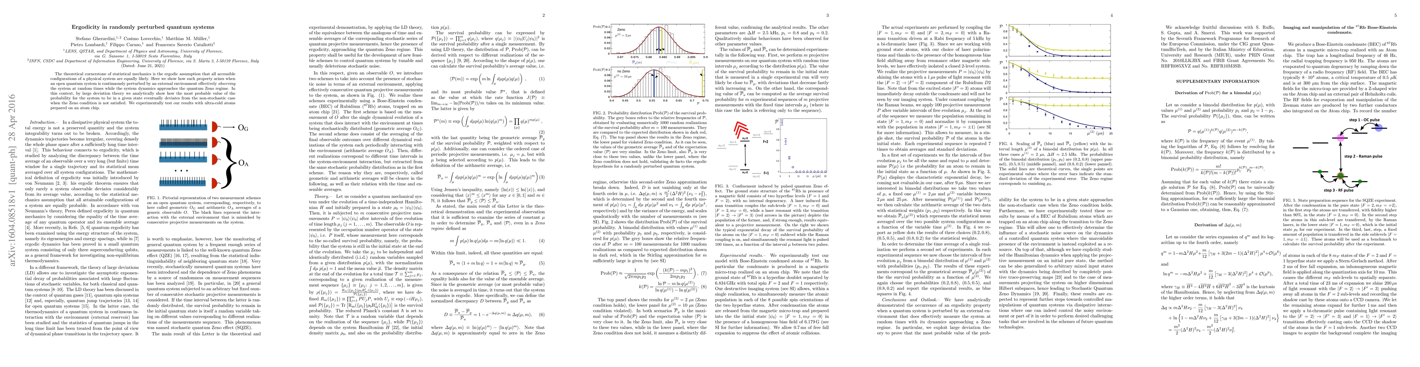 The theoretical cornerstone of statistical mechanics is the ergodic assumption that all accessible configurations of a physical system are equally likely. Here we show how such property arises when an open quantum system is continuously perturbed by an external environment effectively observing the system at random times while the system dynamics approaches the quantum Zeno regime. In this context, by large deviation theory we analytically show how the most probable value of the probability for the system to be in a given state eventually deviates from the non-stochastic case when the Zeno condition is not satisfied. We experimentally test our results with ultra-cold atoms prepared on an atom chip.