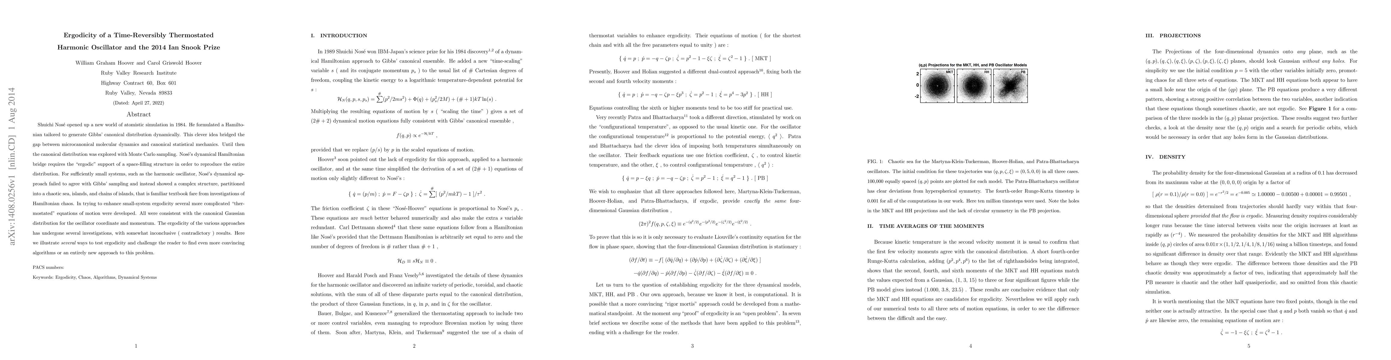 Shuichi Nos\'e opened up a new world of atomistic simulation in 1984. He formulated a Hamiltonian tailored to generate Gibbs' canonical distribution dynamically. This clever idea bridged the gap between microcanonical molecular dynamics and canonical statistical mechanics. Until then the canonical distribution was explored with Monte Carlo sampling. Nos\'e's dynamical Hamiltonian bridge requires the "ergodic" support of a space-filling structure in order to reproduce the entire distribution. For sufficiently small systems, such as the harmonic oscillator, Nos\'e's dynamical approach failed to agree with Gibbs' sampling and instead showed a complex structure, partitioned into a chaotic sea, islands, and chains of islands, that is familiar textbook fare from investigations of Hamiltonian chaos. In trying to enhance small-system ergodicity several more complicated "thermostated" equations of motion were developed. All were consistent with the canonical Gaussian distribution for the oscillator coordinate and momentum. The ergodicity of the various approaches has undergone several investigations, with somewhat inconclusive ( contradictory ) results. Here we illustrate several ways to test ergodicity and challenge the reader to find even more convincing algorithms or an entirely new approach to this problem.