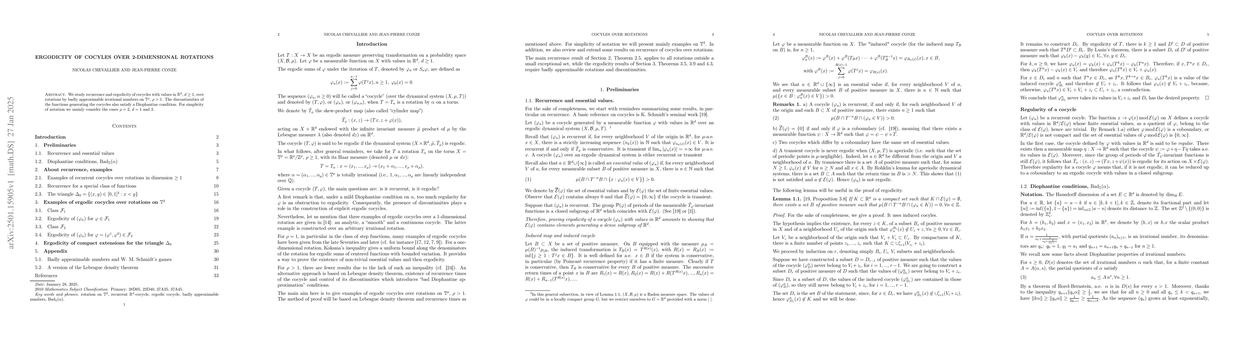 This paper investigates the recurrence and ergodic properties of cocycles over 2-dimensional rotations by irrational numbers that are badly approximable, focusing on cases where the cocycle values are in R and R². It examines the behavior under a Diophantine condition on the discontinuities generating the cocycles.