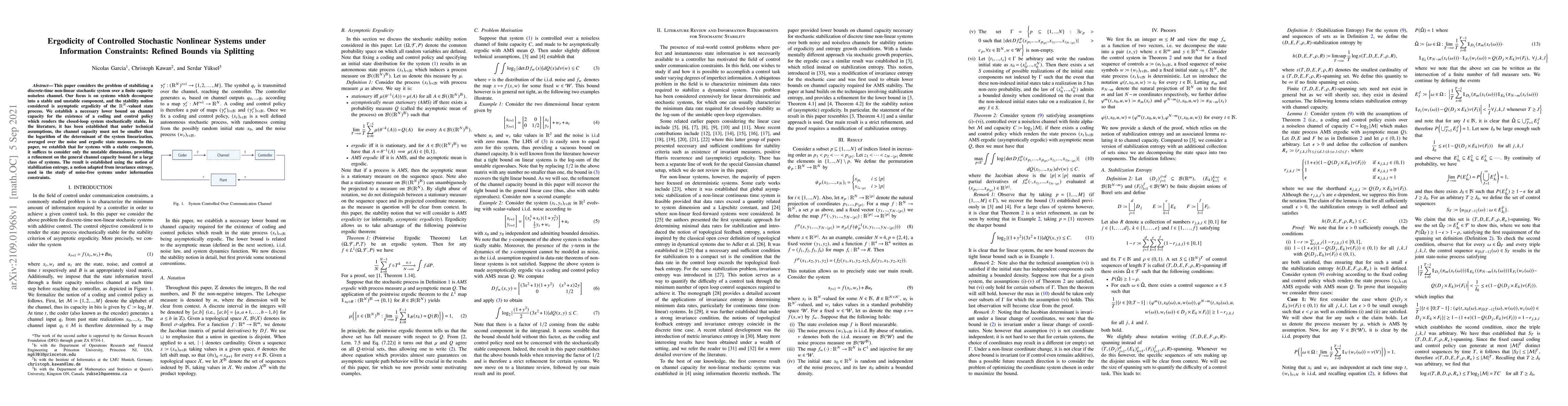 This paper refines the lower bound on channel capacity for stabilizing discrete-time nonlinear stochastic systems by focusing only on the unstable components, using stabilization entropy, and providing a more precise condition for asymptotic ergodicity.