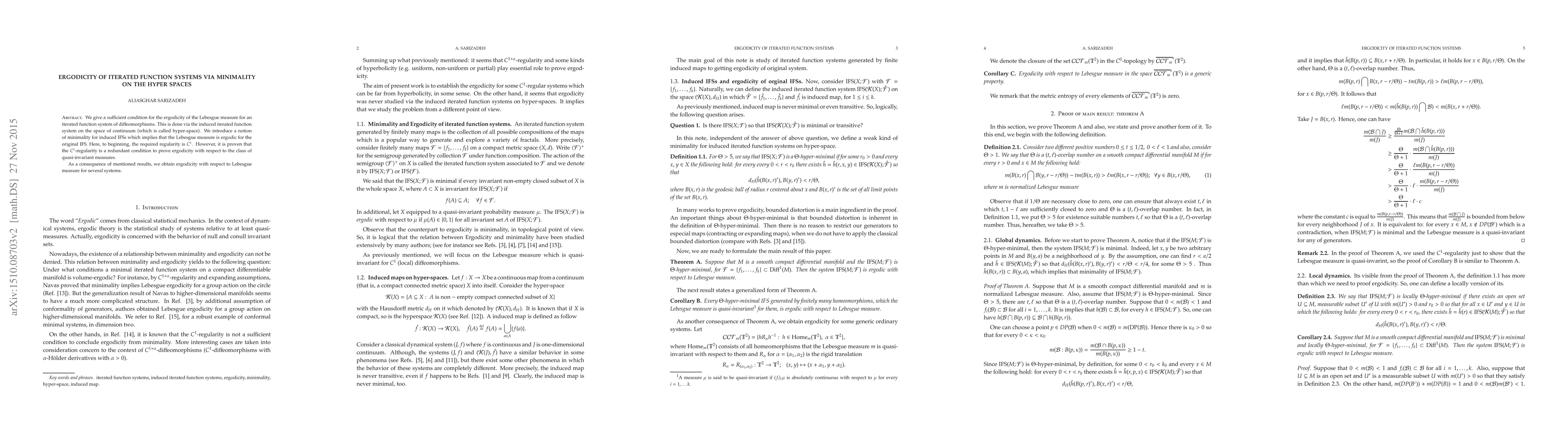 Researchers found a sufficient condition for ergodicity of Lebesgue measure in iterated function systems via minimality on hyper-space, providing new insights into the behavior of these complex systems.
