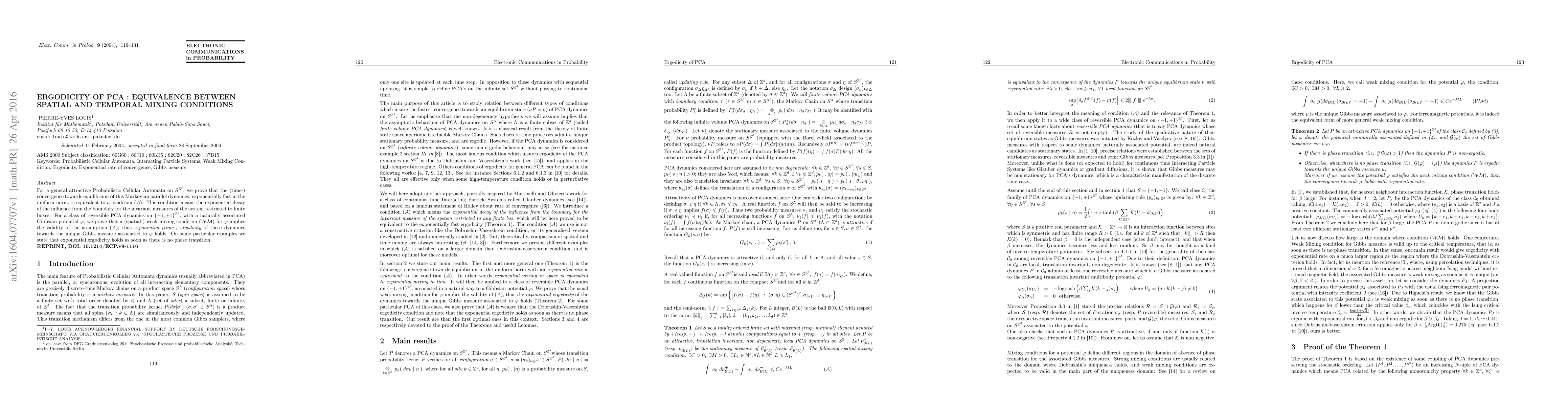 For a general attractive Probabilistic Cellular Automata on S Z d , we prove that the (time-) convergence towards equilibrium of this Markovian parallel dynamics, exponentially fast in the uniform norm, is equivalent to a condition (A). This condition means the exponential decay of the inuence from the boundary for the invariant measures of the system restricted to nite boxes. For a class of reversible PCA dynamics on {--1, +1} Z d , with a naturally associated Gibbsian potential $\varphi$, we prove that a (spatial-) weak mixing condition (WM) for $\varphi$ implies the validity of the assumption (A); thus exponential (time-) ergodicity of these dynamics towards the unique Gibbs measure associated to $\varphi$ holds. On some particular examples we state that exponential ergodicity holds as soon as there is no phase transition.