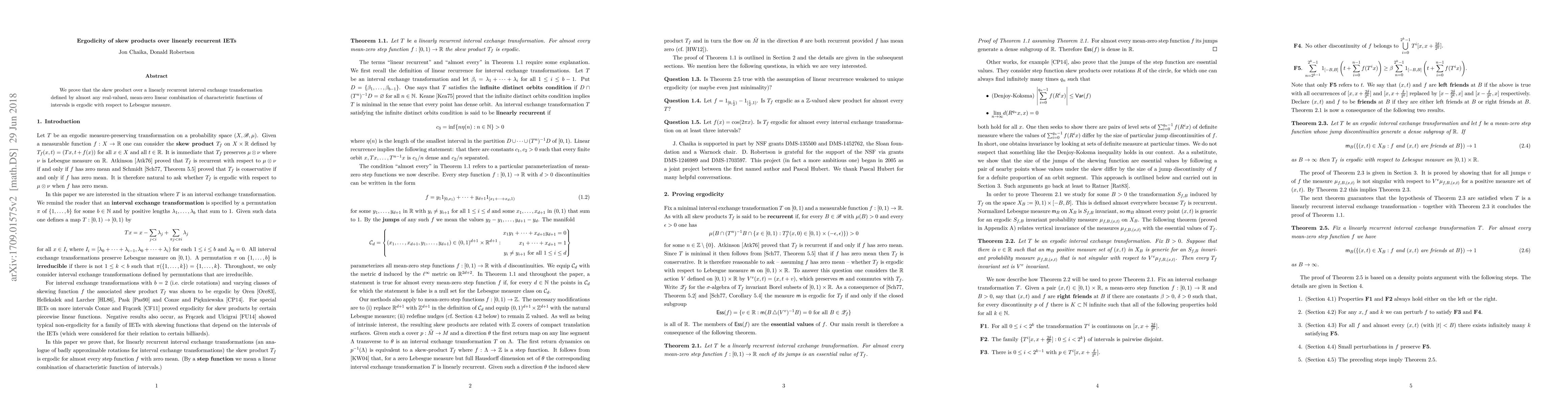 Summary: This paper demonstrates the ergodicity of skew products associated with linearly recurrent interval exchange transformations, specifically showing that almost any mean-zero linear combination of interval characteristic functions results in ergodicity with respect to Lebesgue measure.