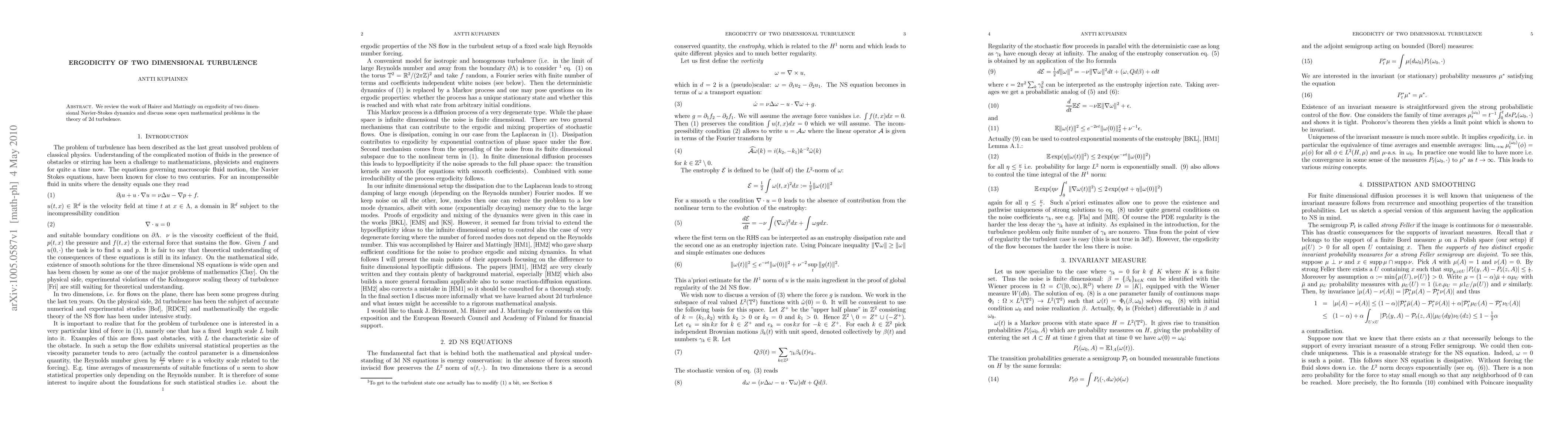 We review the work of Hairer and Mattingly on ergodicity of two dimensional Navier-Stokes dynamics and discuss some open mathematical problems in the theory of 2d turbulence.