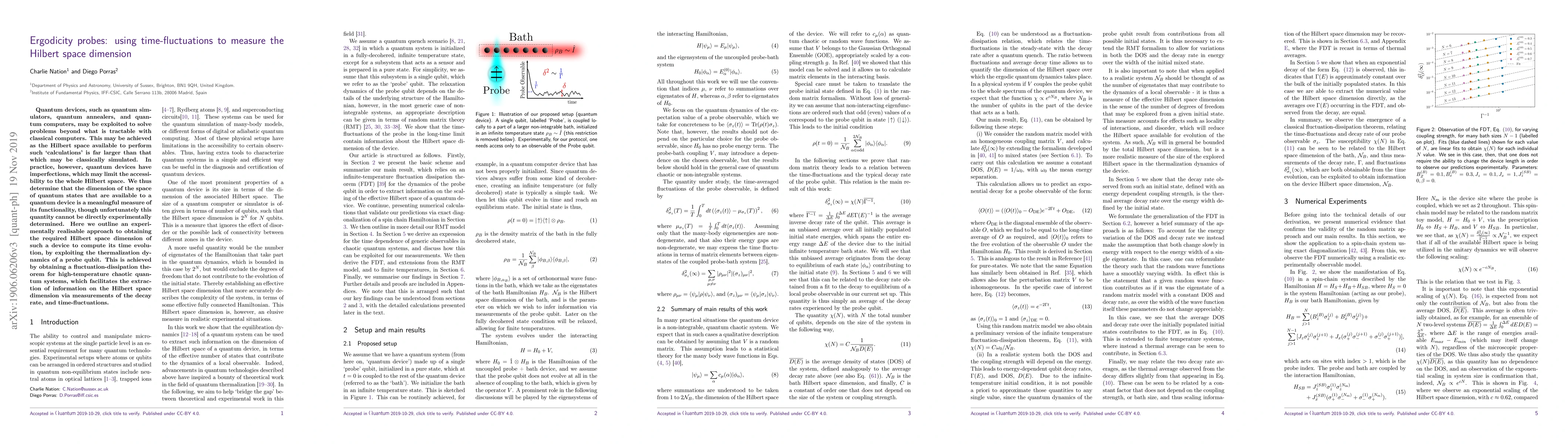 Quantum devices, such as quantum simulators, quantum annealers, and quantum computers, may be exploited to solve problems beyond what is tractable with classical computers. This may be achieved as the Hilbert space available to perform such `calculations' is far larger than that which may be classically simulated. In practice, however, quantum devices have imperfections, which may limit the accessibility to the whole Hilbert space. We thus determine that the dimension of the space of quantum states that are available to a quantum device is a meaningful measure of its functionality, though unfortunately this quantity cannot be directly experimentally determined. Here we outline an experimentally realisable approach to obtaining the required Hilbert space dimension of such a device to compute its time evolution, by exploiting the thermalization dynamics of a probe qubit. This is achieved by obtaining a fluctuation-dissipation theorem for high-temperature chaotic quantum systems, which facilitates the extraction of information on the Hilbert space dimension via measurements of the decay rate, and time-fluctuations.