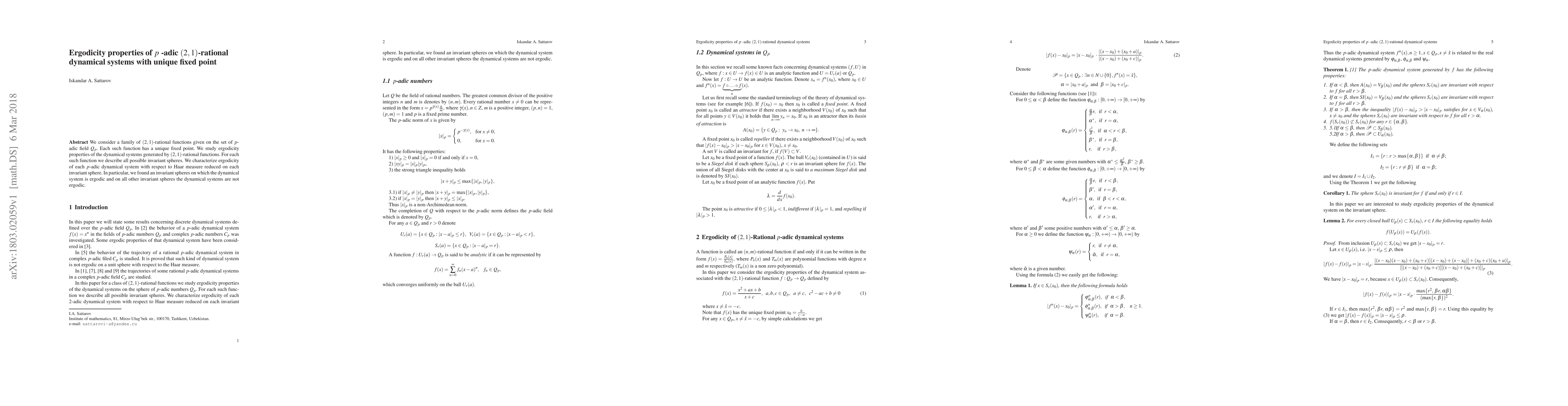 The paper investigates $(2,1)$-rational dynamical systems defined on $p$-adic fields, focusing on their ergodicity properties. It characterizes invariant spheres and determines the systems' ergodic behavior on these spheres, finding that some are ergodic while others are not.