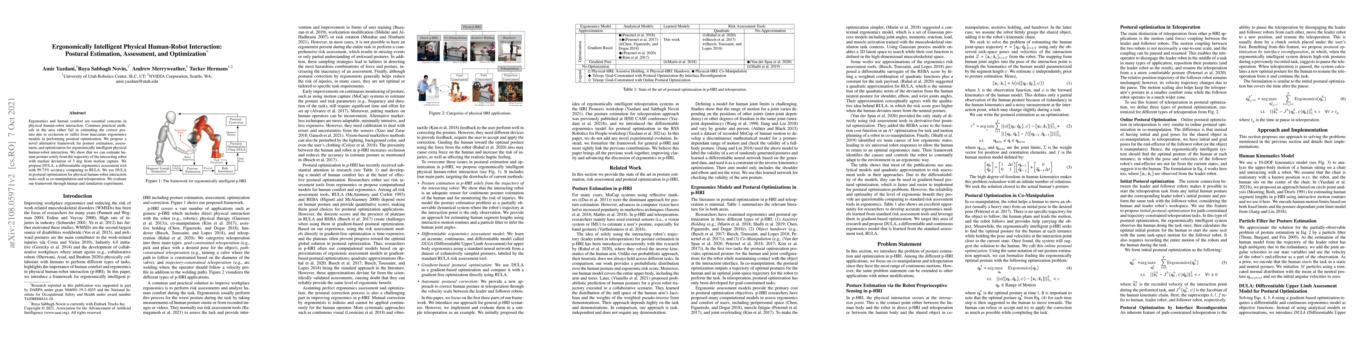 This research introduces a framework for ergonomically intelligent physical human-robot interaction, capable of estimating human posture from robot trajectory with a median deviation of 5 deg and optimizing ergonomics using DULA, achieving 99.73% accuracy compared to RULA, validated through human and simulation experiments.