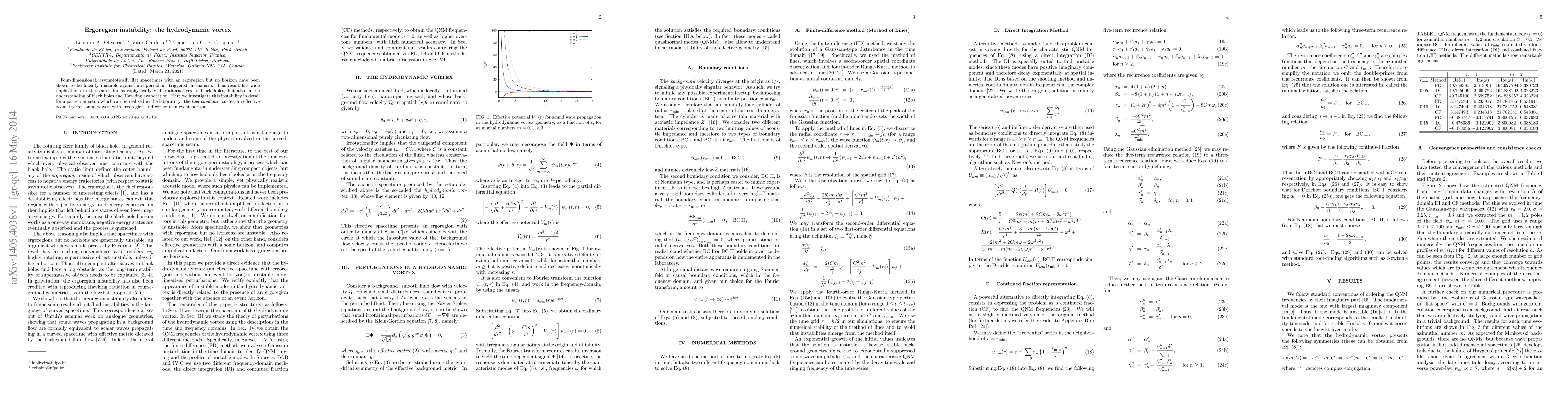 This paper investigates the linear instability of four-dimensional, asymptotically flat spacetimes with ergoregions but no horizons, focusing on the hydrodynamic vortex as a laboratory model. The study reveals significant implications for both alternative black hole theories and the understanding of black hole evaporation.