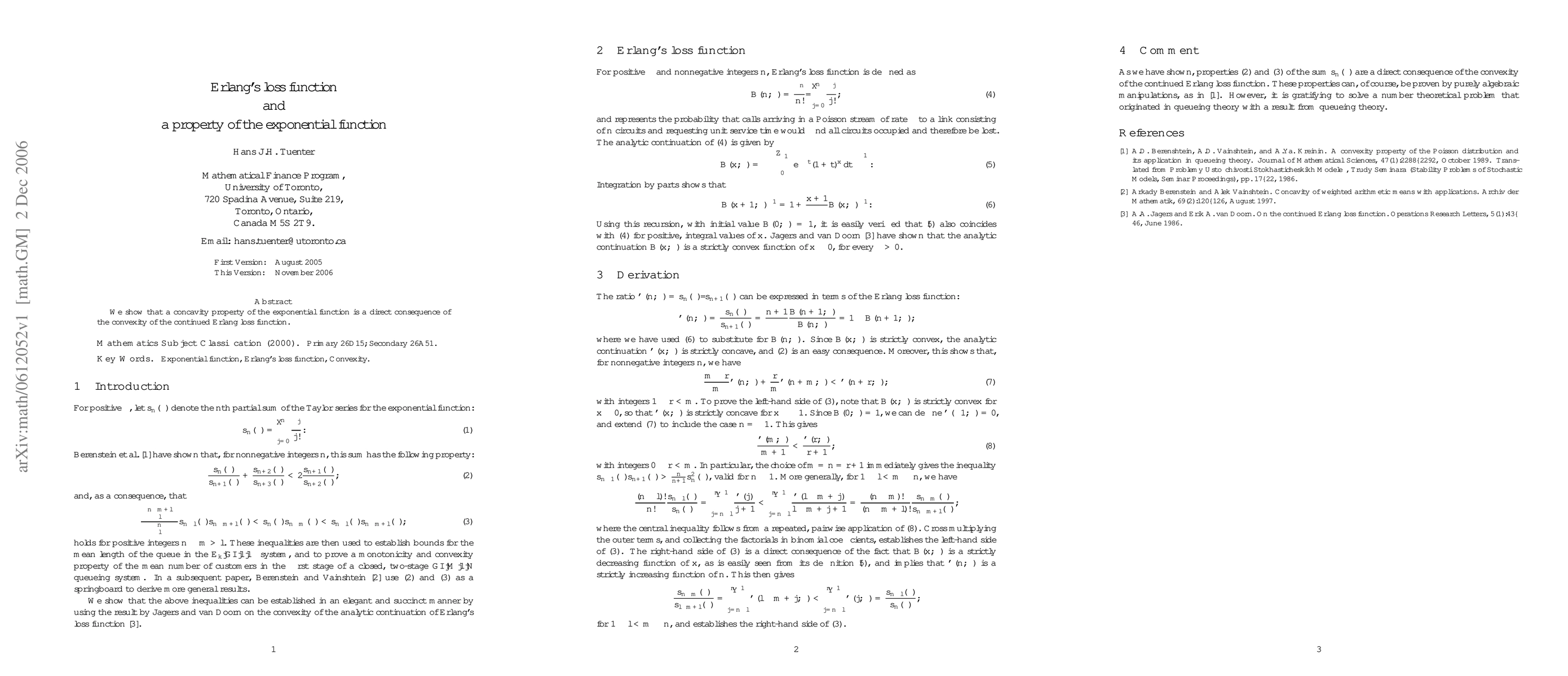 We show that a concavity property of the exponential function is a direct consequence of the convexity of the continued Erlang loss function.