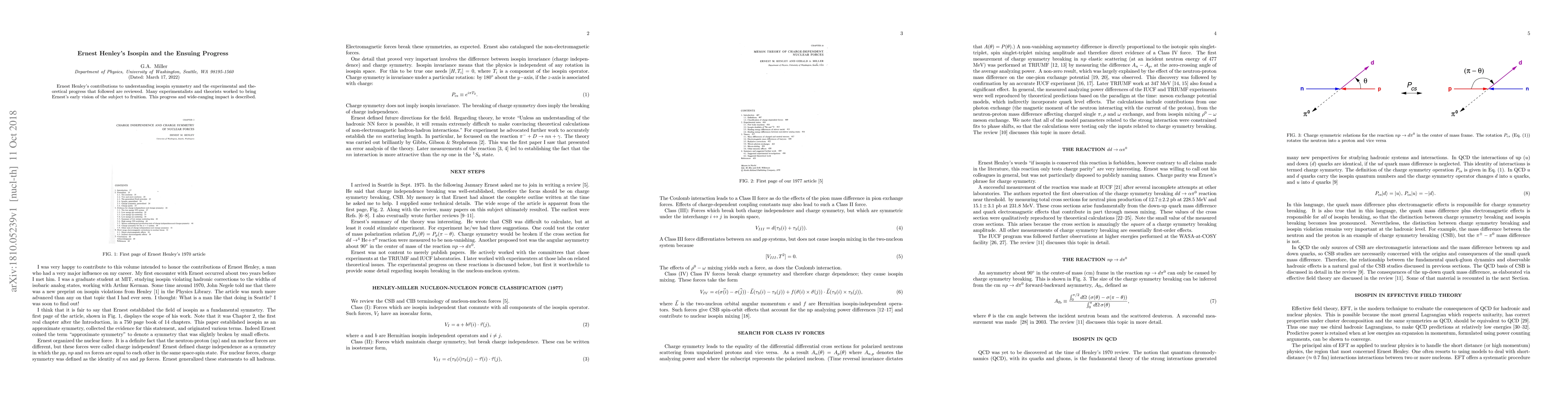Ernest Henley's contributions to understanding isospin symmetry and the experimental and theoretical progress that followed are reviewed. Many experimentalists and theorists worked to bring Ernest's early vision of the subject to fruition. This progress and wide-ranging impact is described.