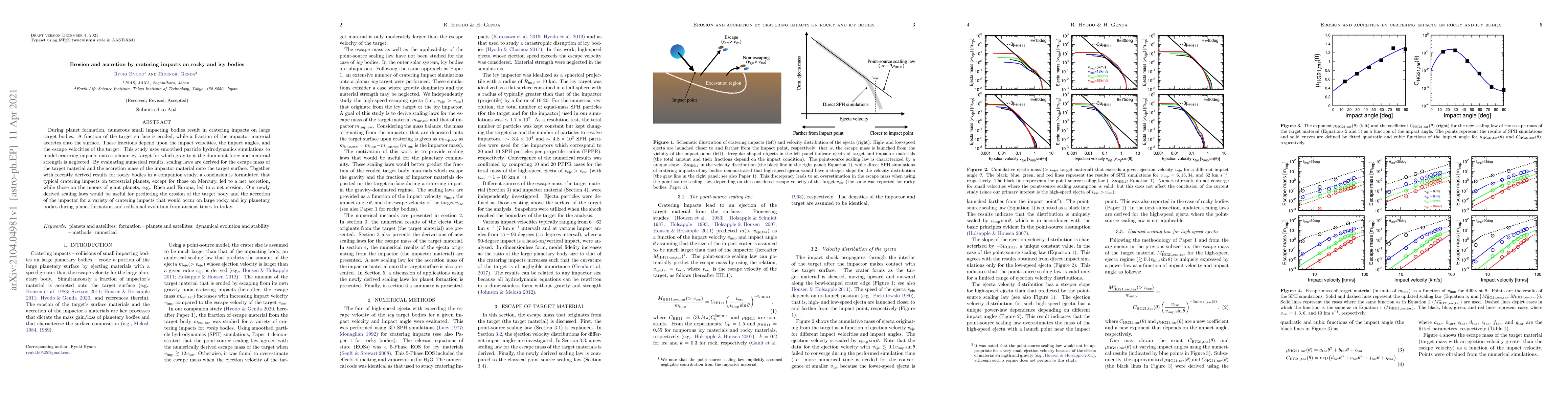 This study uses simulations to model cratering impacts on icy bodies, deriving scaling laws for erosion and accretion based on impact parameters. It concludes that typical cratering on terrestrial planets causes net accretion, while impacts on icy moons lead to net erosion, providing useful predictions for planetary evolution.