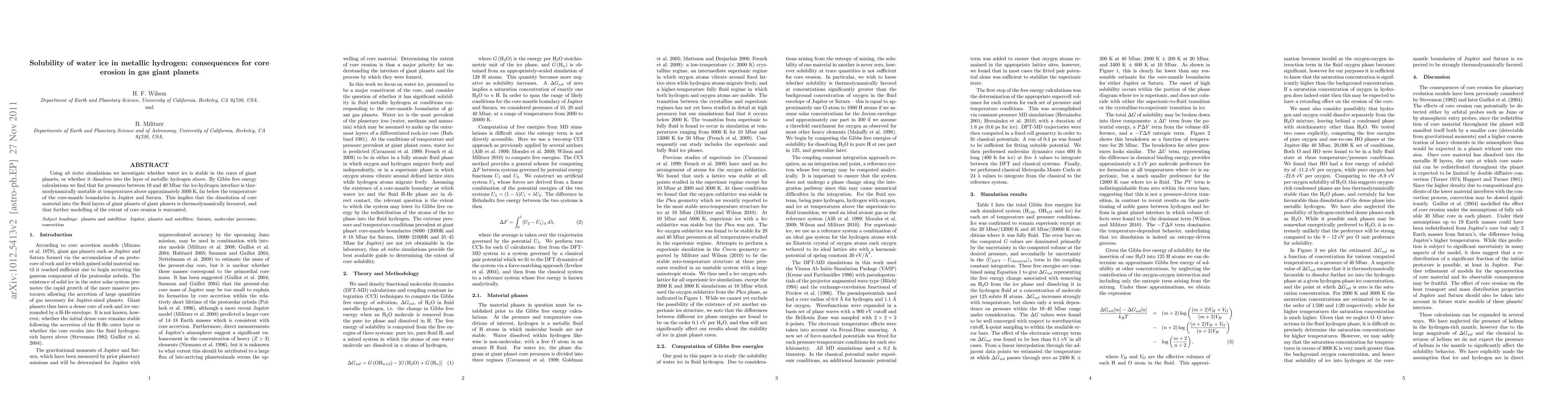 The study reveals that water ice in the cores of giant gas planets is unstable and erodes into metallic hydrogen under high pressures and temperatures, suggesting that the cores of such planets are partially dissolved. This finding is based on ab initio simulations and Gibbs free energy calculations.
