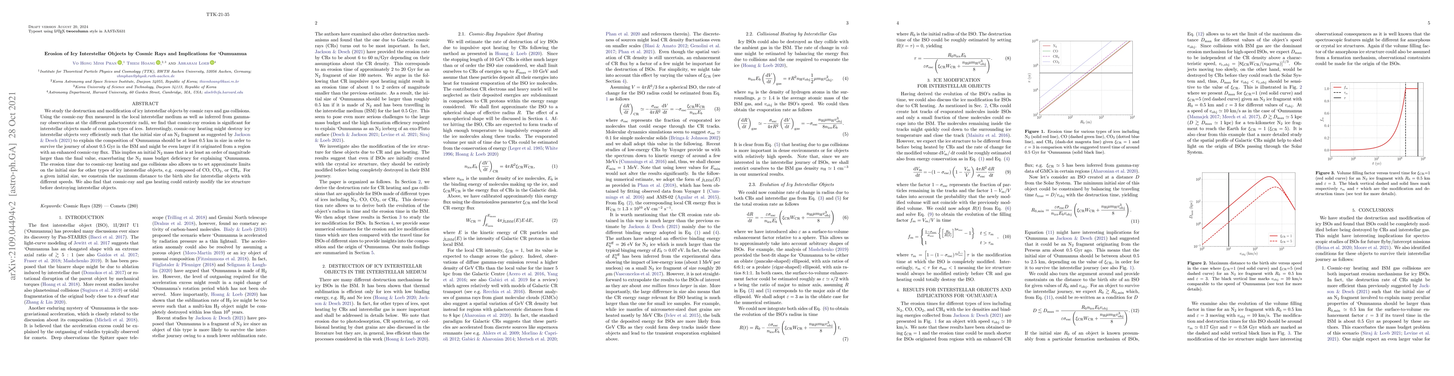 This paper investigates the erosion of icy interstellar objects by cosmic rays and gas collisions, finding that cosmic-ray heating can efficiently destroy such objects. For `Oumuamua, it suggests that its initial size must be at least 0.5 km to survive the interstellar medium journey, implying a much larger initial nitrogen mass than currently observed.
