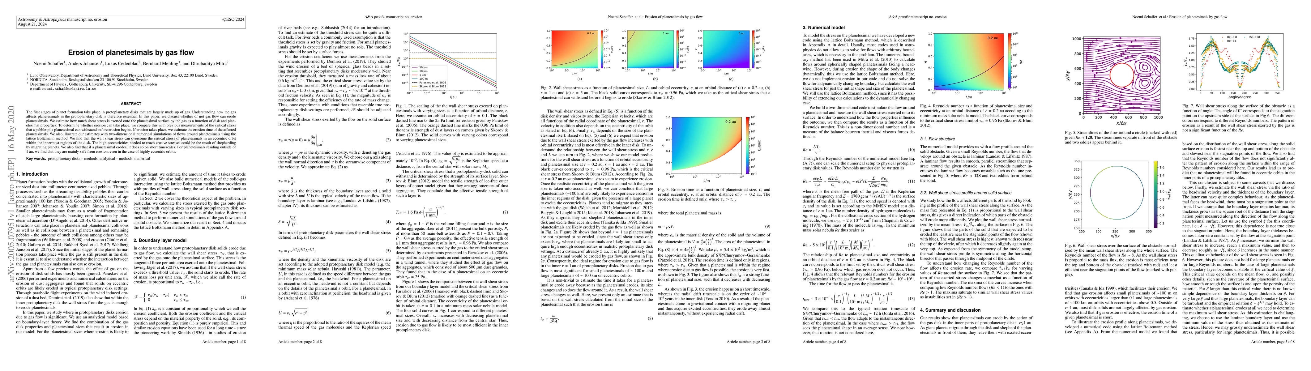This paper investigates whether gas flow in protoplanetary disks can erode planetesimals by estimating the shear stress exerted by the gas and comparing it to critical stress thresholds. It finds that planetesimals in eccentric orbits within the innermost disk regions can be eroded on short timescales, while those beyond 1 au are generally safe from erosion.