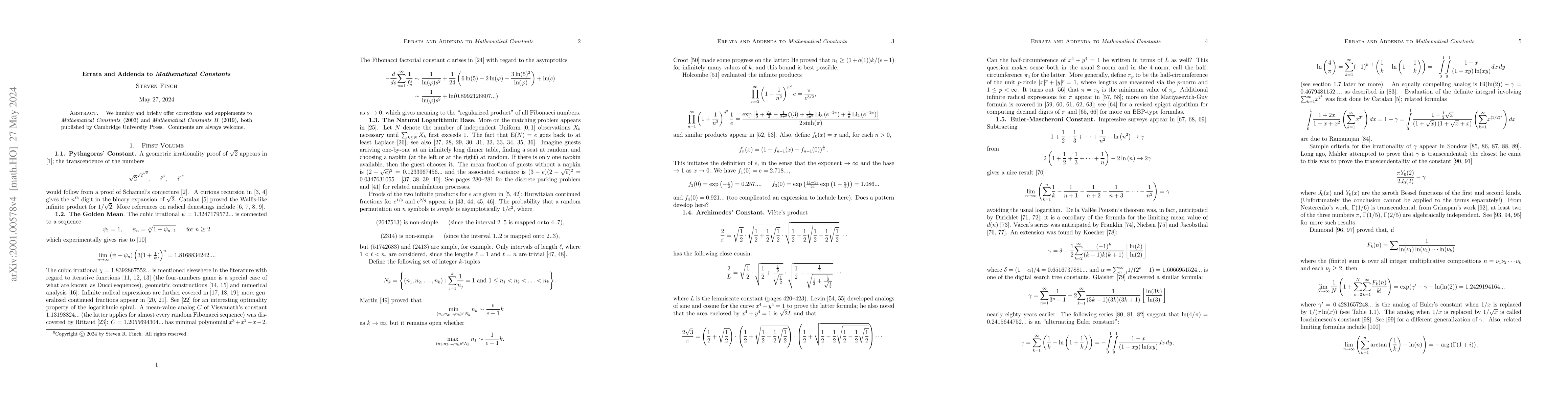 We humbly and briefly offer corrections and supplements to Mathematical Constants (2003) and Mathematical Constants II (2019), both published by Cambridge University Press. Comments are always welcome.