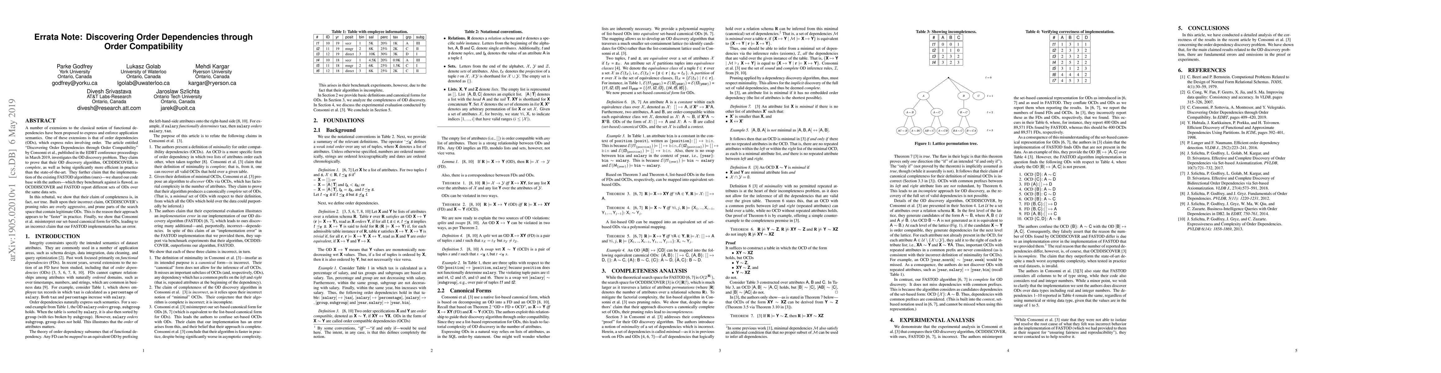 This paper rebuts the claims of Consonni et al.'s "Discovering Order Dependencies through Order Compatibility," arguing that their OD discovery algorithm, OCDDISCOVER, is not complete and that its pruning rules incorrectly eliminate valid order dependencies. The rebuttal also asserts that Consonni et al. misinterpreted the FASTOD algorithm's canonical form, leading to erroneous conclusions about its implementation.