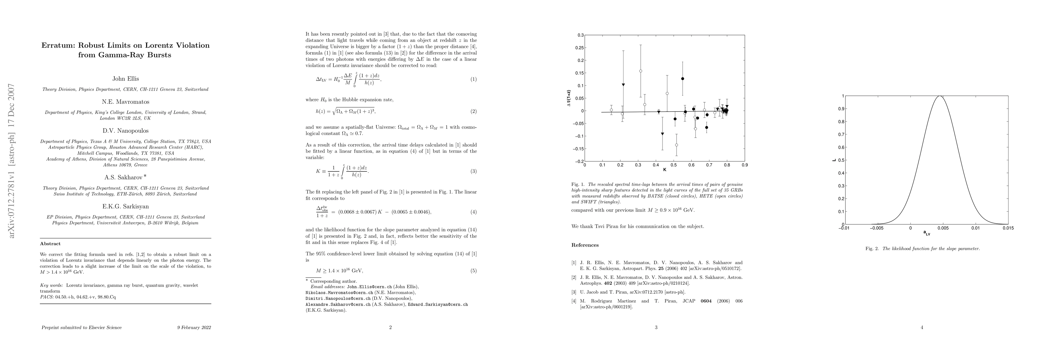 We correct the fitting formula used in refs. [1,2] to obtain a robust limit on a violation of Lorentz invariance that depends linearly on the photon energy. The correction leads to a slight increase of the limit on the scale of the violation, to M > 1.4 x 10^{16} GeV.