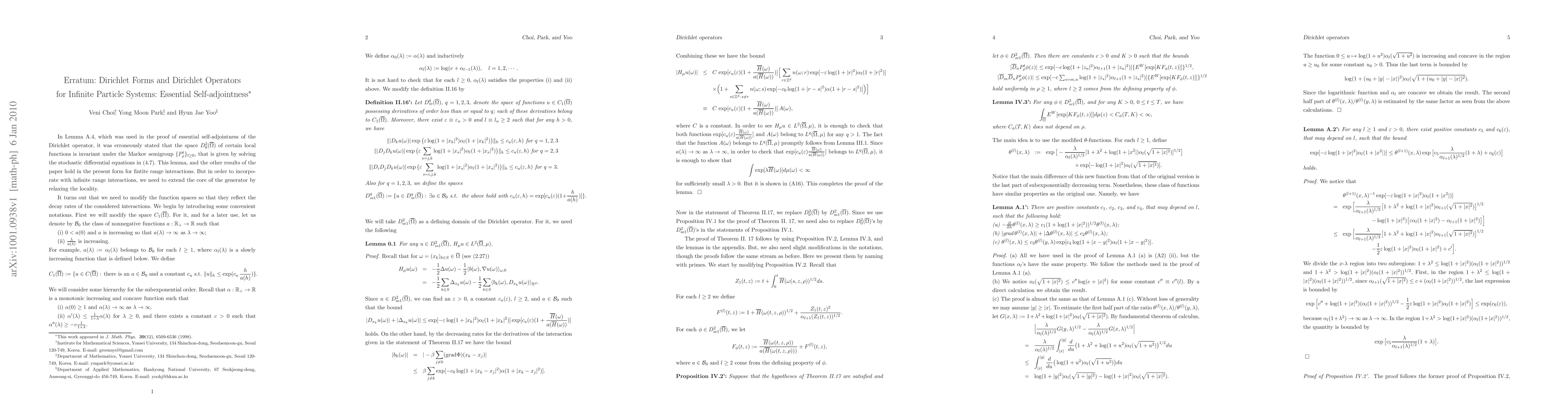 We reprove the essential self-adjointness of the Dirichlet operators of Dirchlet forms for infinite particle systems with superstable and sub-exponentially decreasing interactions.