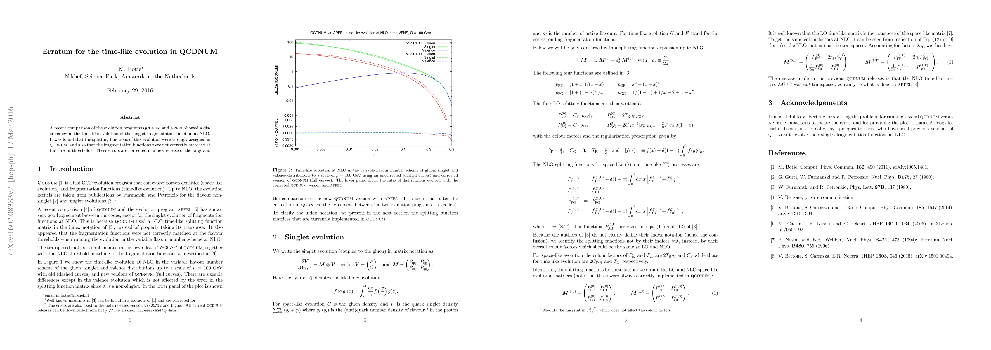 A recent comparison of the evolution programs QCDNUM and APFEL showed a discrepancy in the time-like evolution of the singlet fragmentation function at NLO. It was found that the splitting functions of this evolution were wrongly assigned in QCDNUM, and also that the fragmentation functions were not correctly matched at the flavour thresholds. These errors are corrected in a new release of the program.