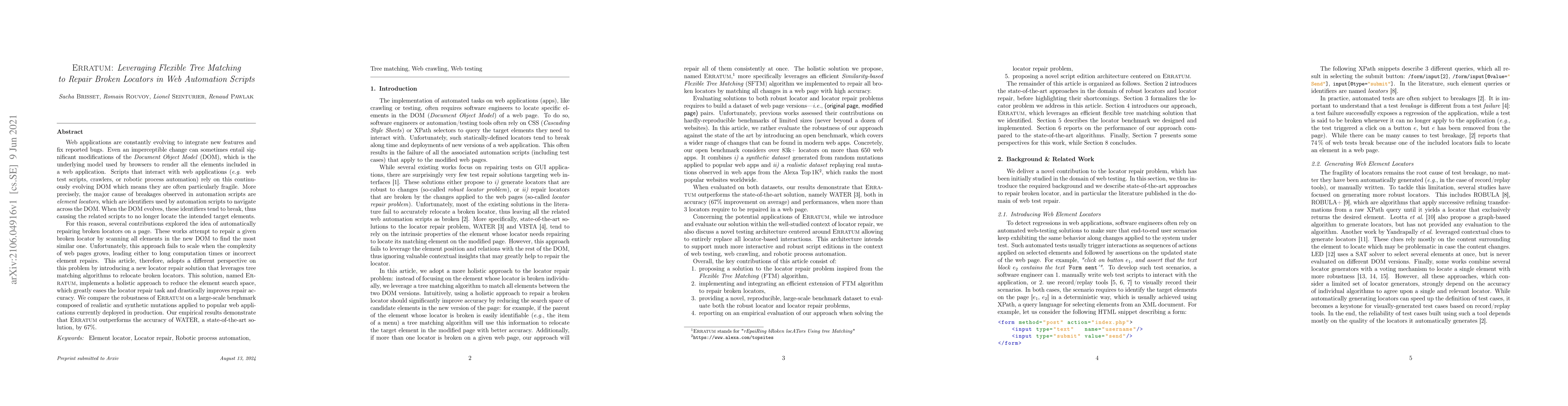 A new method called Erratum uses tree matching algorithms to repair broken locators in web automation scripts, outperforming a state-of-the-art solution by 67%.