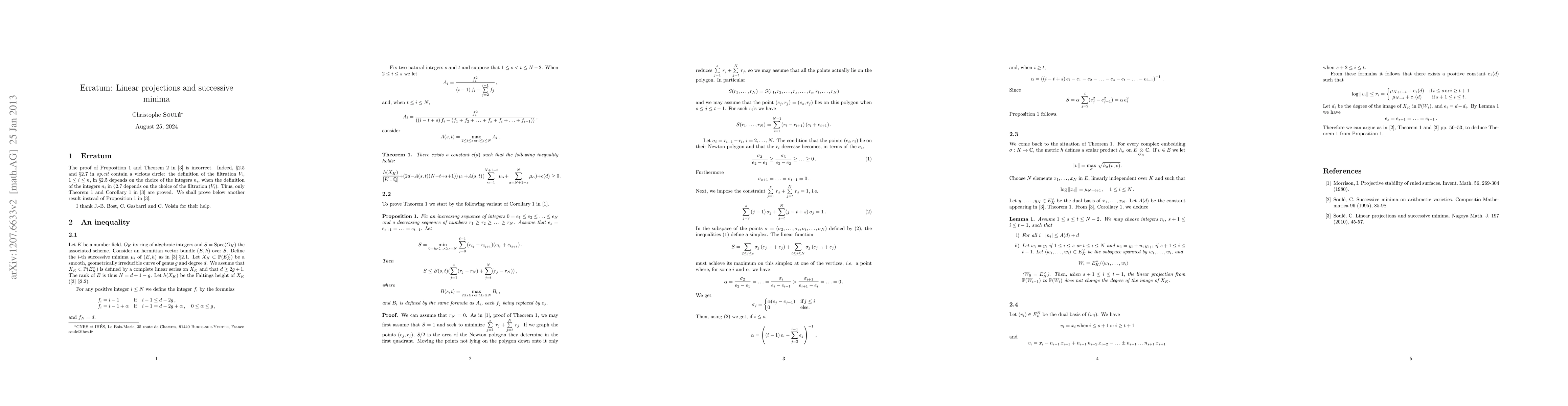 Given a euclidean lattice and a curve in the corresponding projective space, our goal is to relate the height of the curve to the successive minima of the lattice. The proof of such a statement in http://hal.archves-ouvertes.vf/hal-00270564 was incorrect. We prove another result instead.