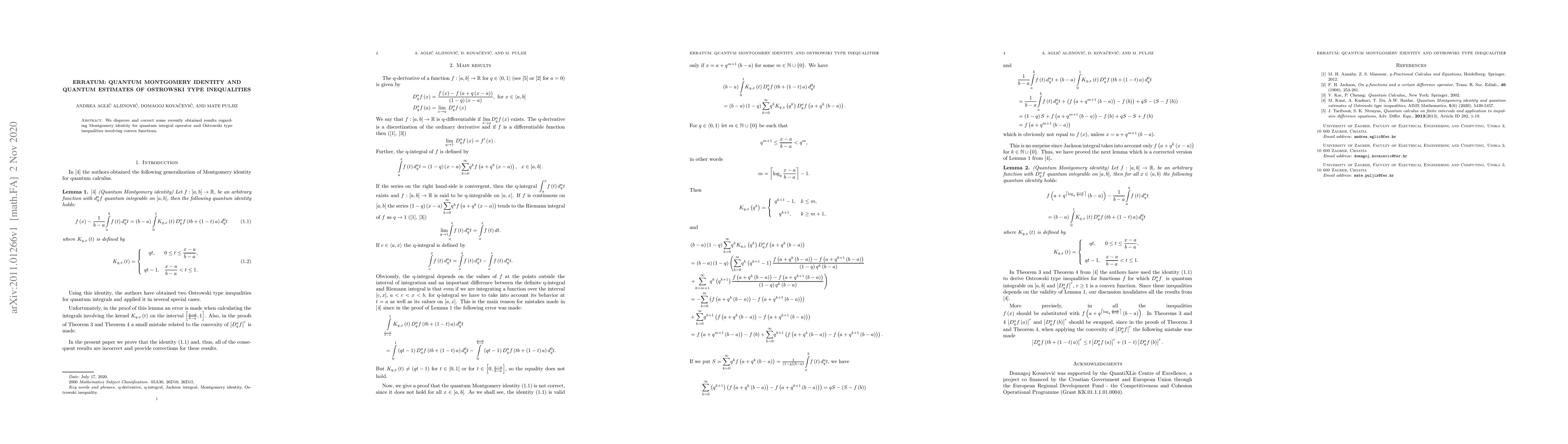 We disprove and correct some recently obtained results regarding Montgomery identity for quantum integral operator and Ostrowski type inequalities involving convex functions.