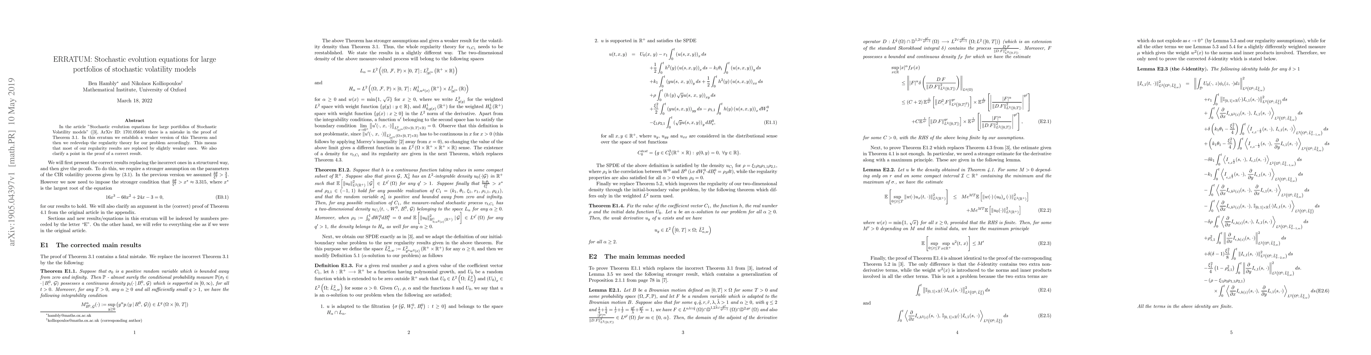 This erratum paper corrects a mistake in a previous research paper on stochastic volatility models, establishing a weaker version of a key theorem and redeveloping regularity theory accordingly.