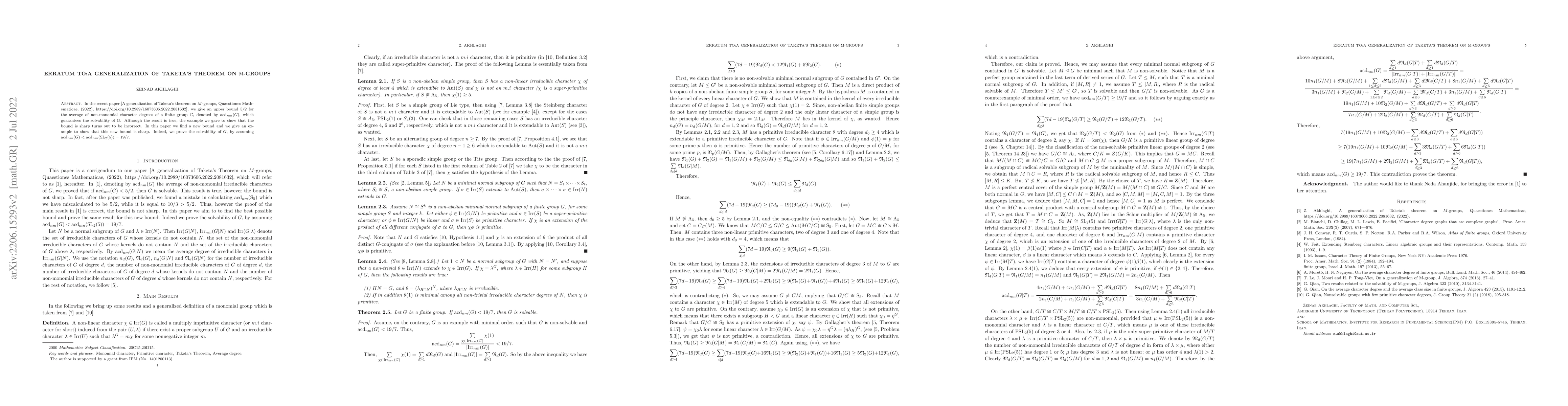 This paper corrects an error in the previous generalization of Taketa's Theorem on M-groups, providing a new upper bound for the average of non-monomial character degrees of a finite group G, and presents an example demonstrating the sharpness of this new bound.
