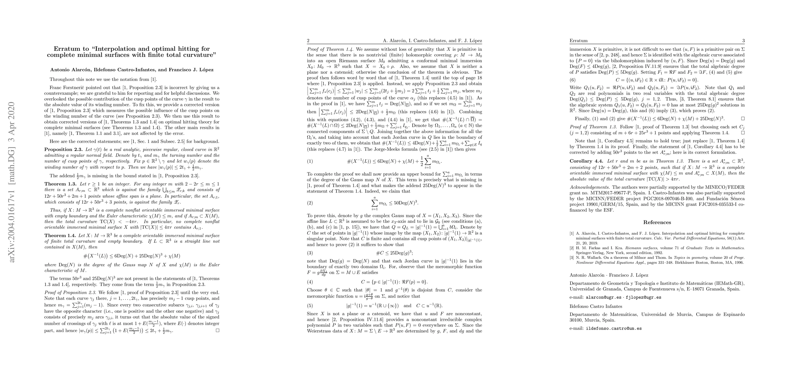 This erratum corrects a previous paper, addressing a mistake found in 'Interpolation and optimal hitting for complete minimal surfaces with finite total curvature' (Calc. Var. Partial Differential Equations 58 (2019), no. 1, 58:21), originally presented in the preprint arXiv:1712.04727.